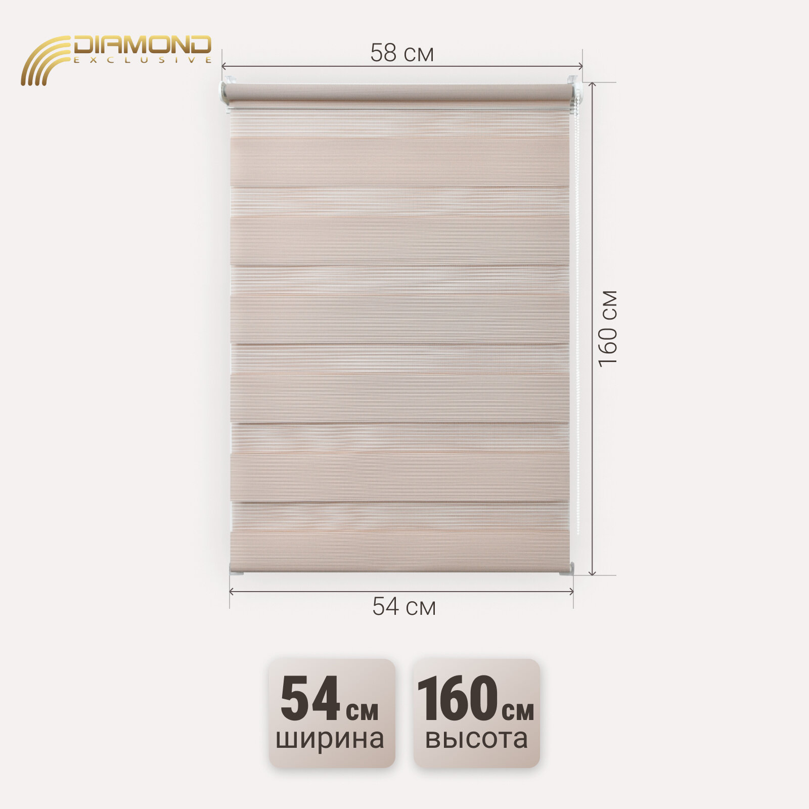 Рулонная штора с эффектом "день-ночь" 57х160 см, цвет светло-персиковый