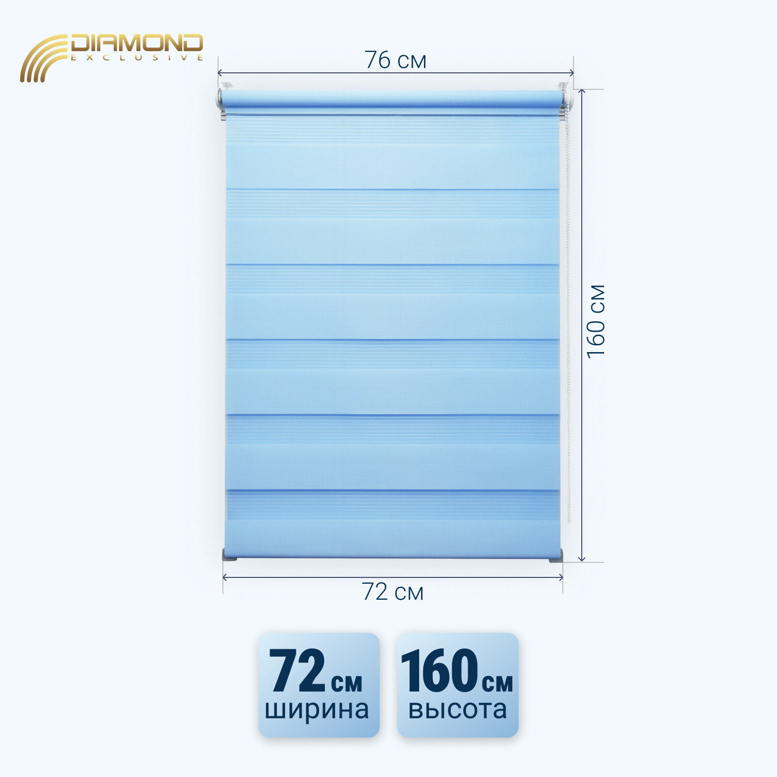 Купить Рулонная штора с эффектом "день-ночь" 72х160 см, цвет голубой