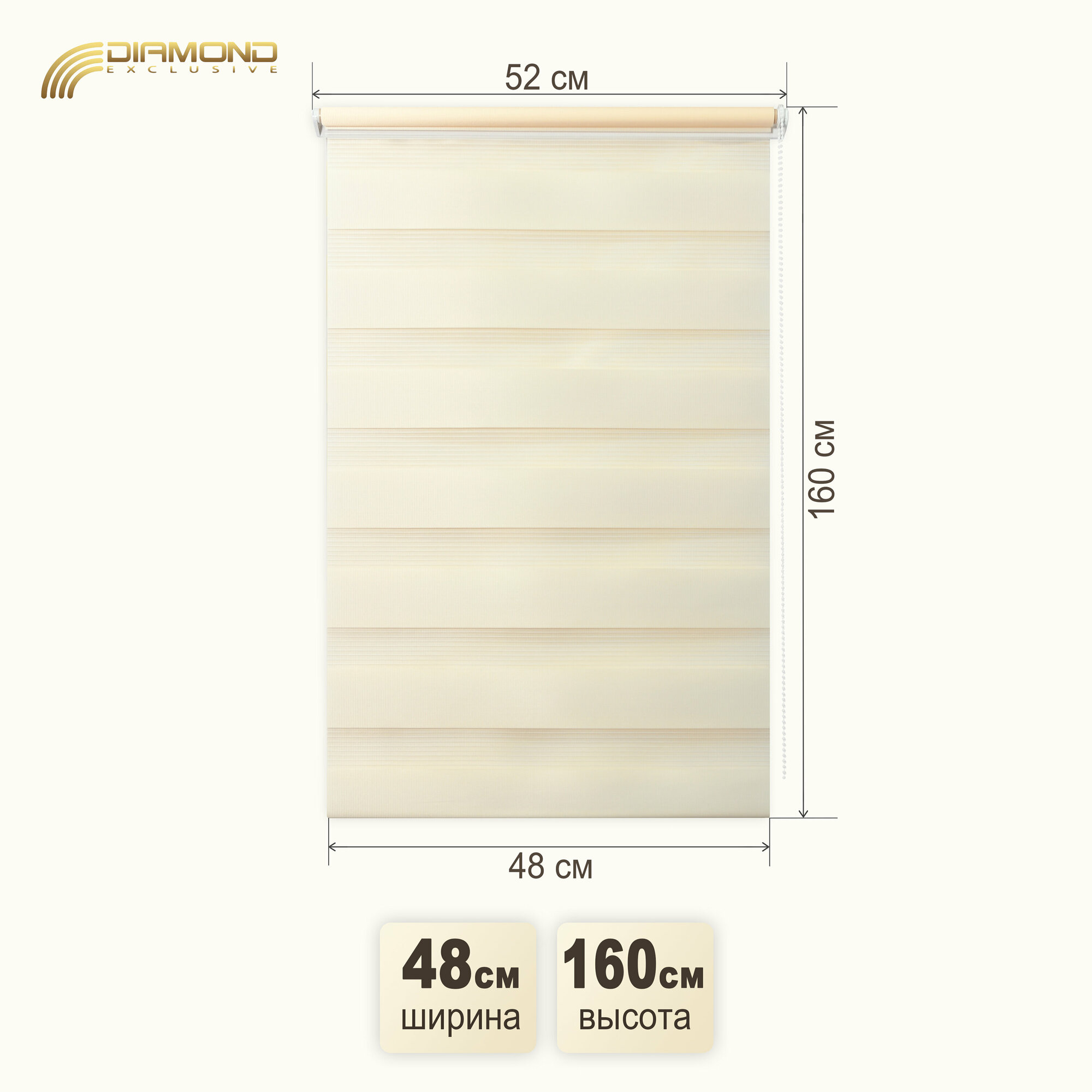 Рулонная штора с эффектом "день-ночь" 52х160 см, цвет светло-персиковый