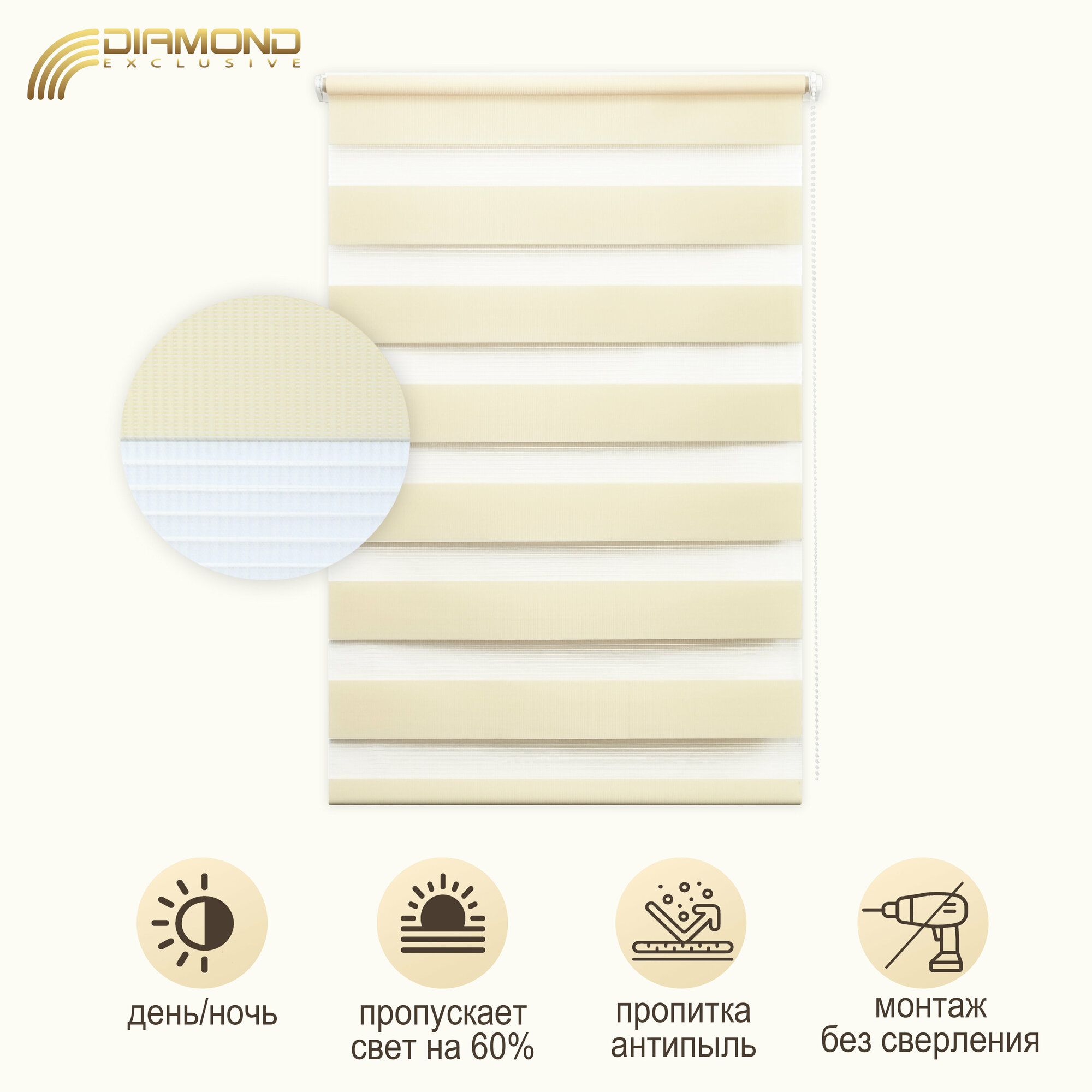 Рулонная штора с эффектом "день-ночь" 61х160 см, цвет светло-персиковый