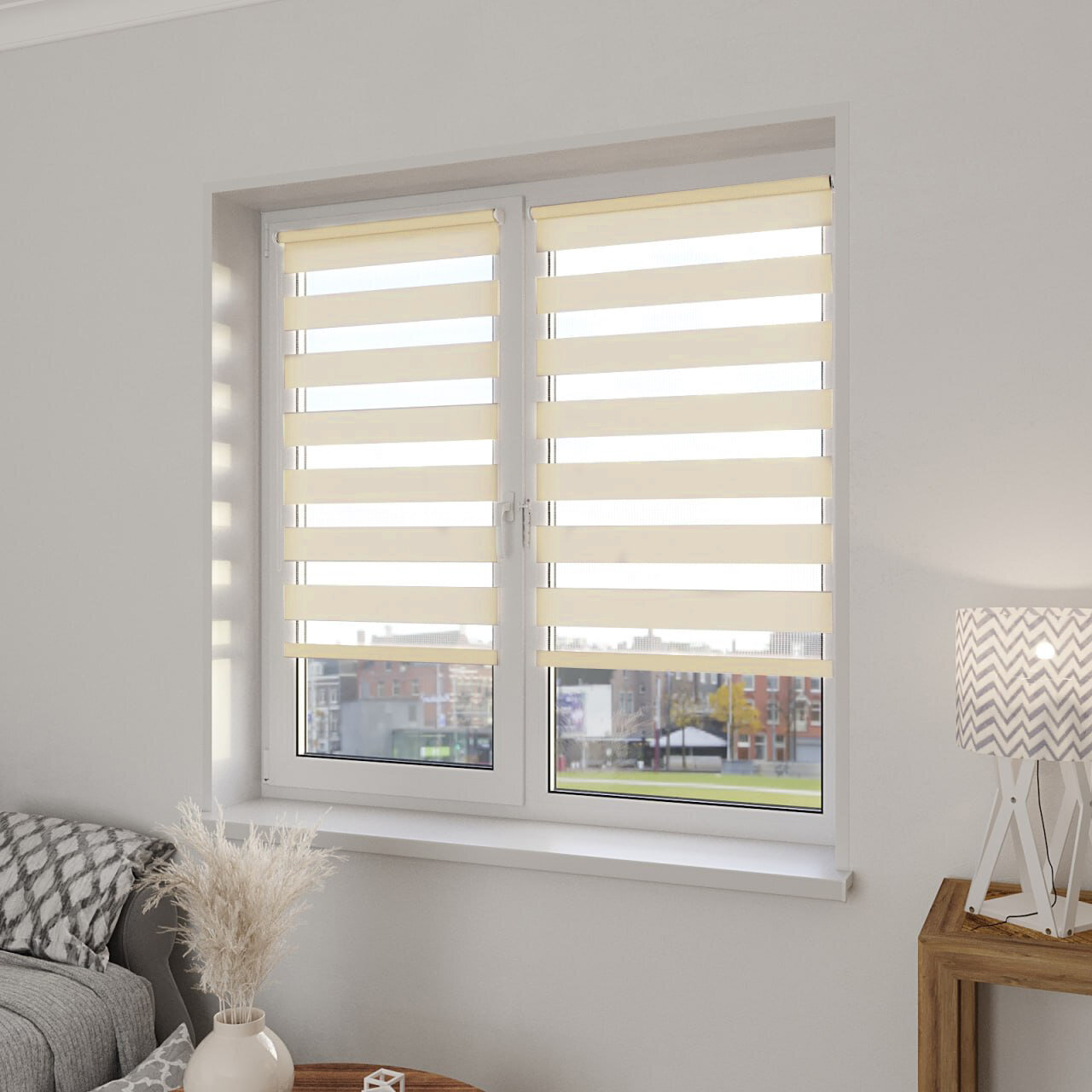 Рулонная штора с эффектом "день-ночь" Сандра 43х160 см, цвет светло-желтый