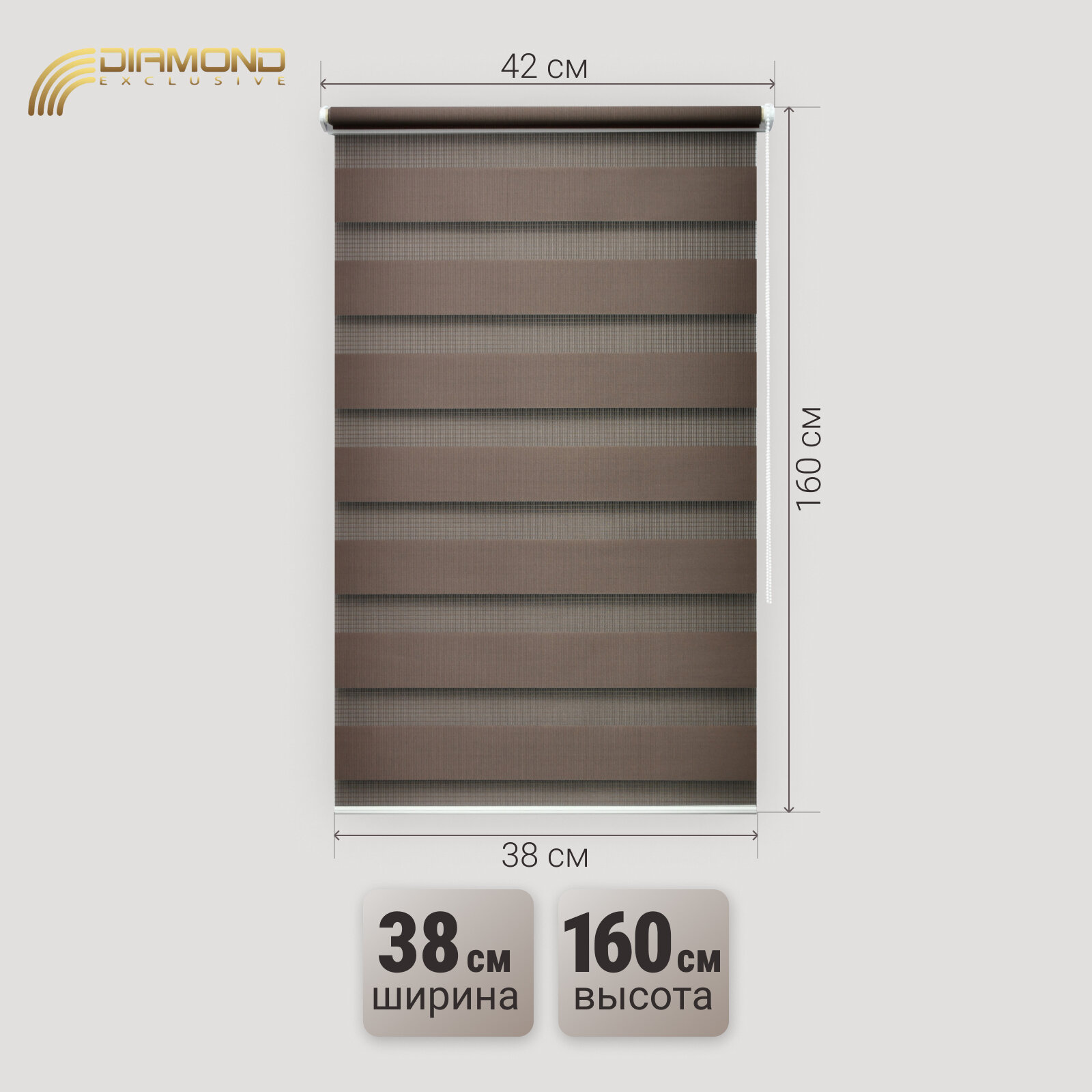 Рулонная штора с эффектом "день-ночь" 38х160 см, цвет бронзовый