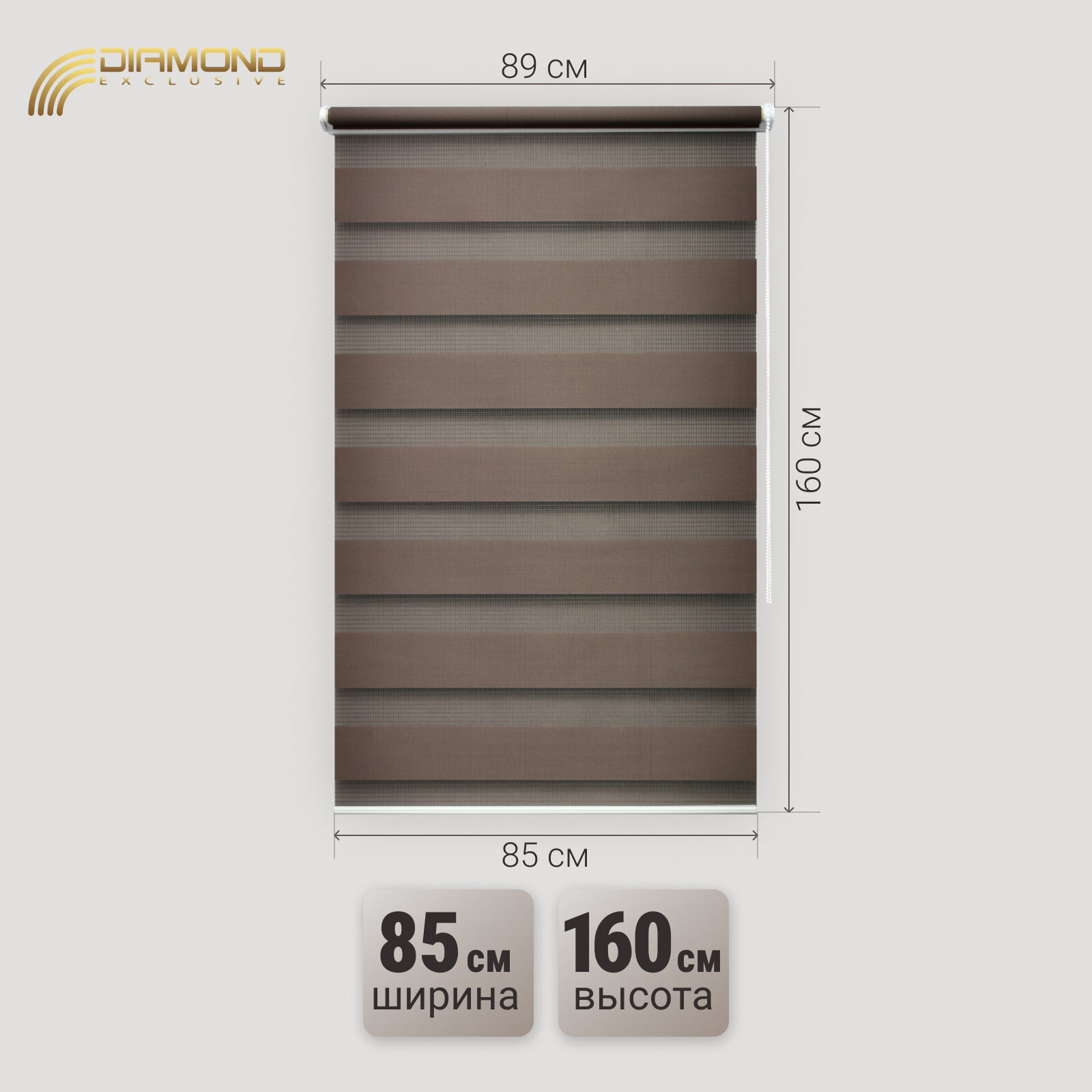 Рулонная штора с эффектом "день-ночь" 85х160 см, цвет бронзовый