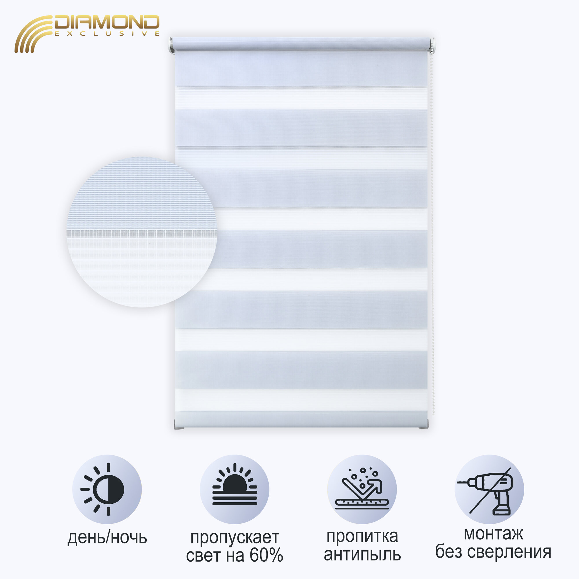 Рулонная штора с эффектом "день-ночь" Сандра 61х160 см, цвет белый