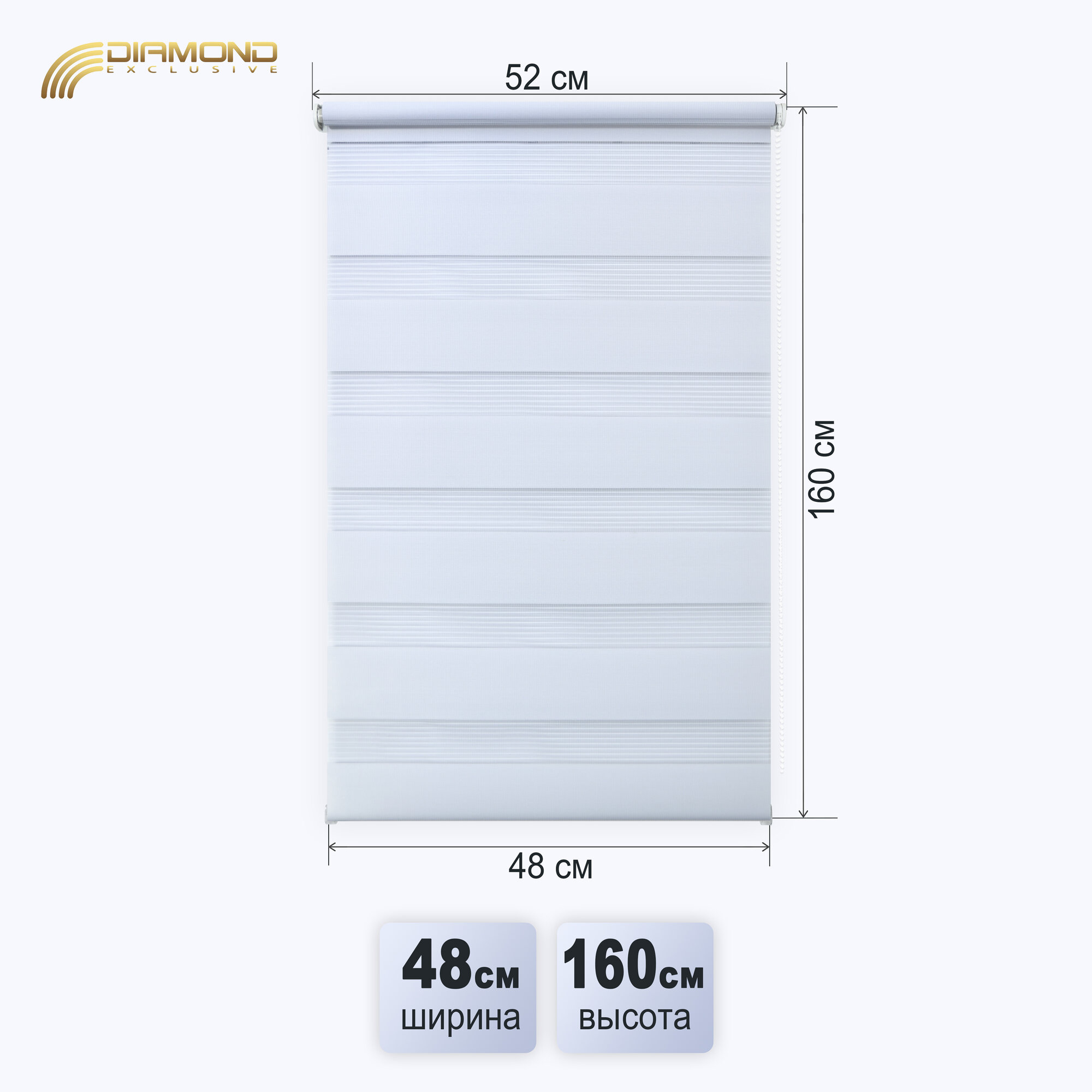 Рулонная штора с эффектом "день-ночь" Сандра 48х160 см, цвет белый