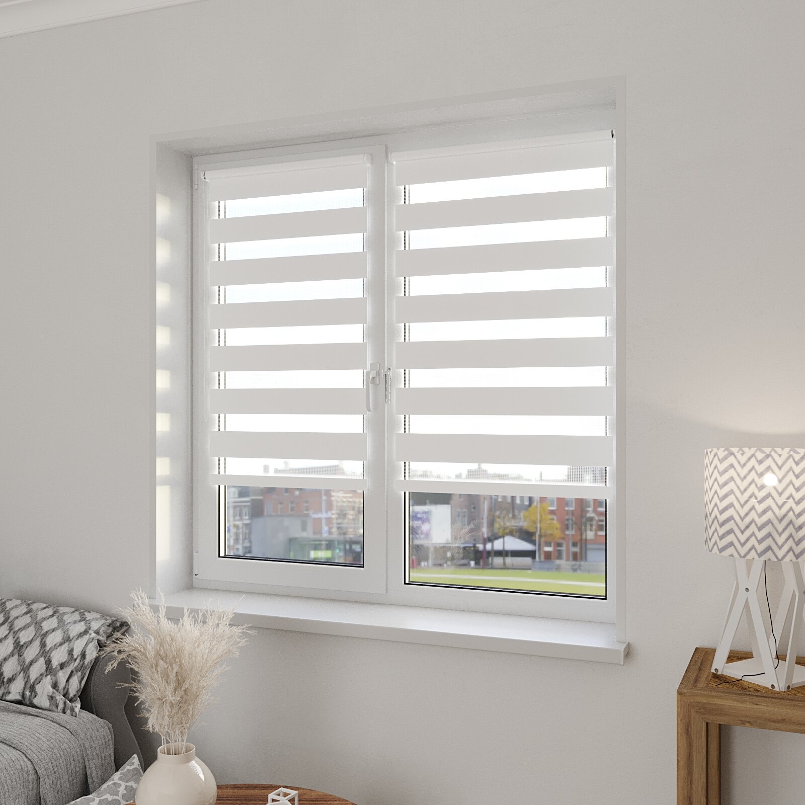 Рулонная штора с эффектом "день-ночь" Сандра 85х160 см, цвет белый