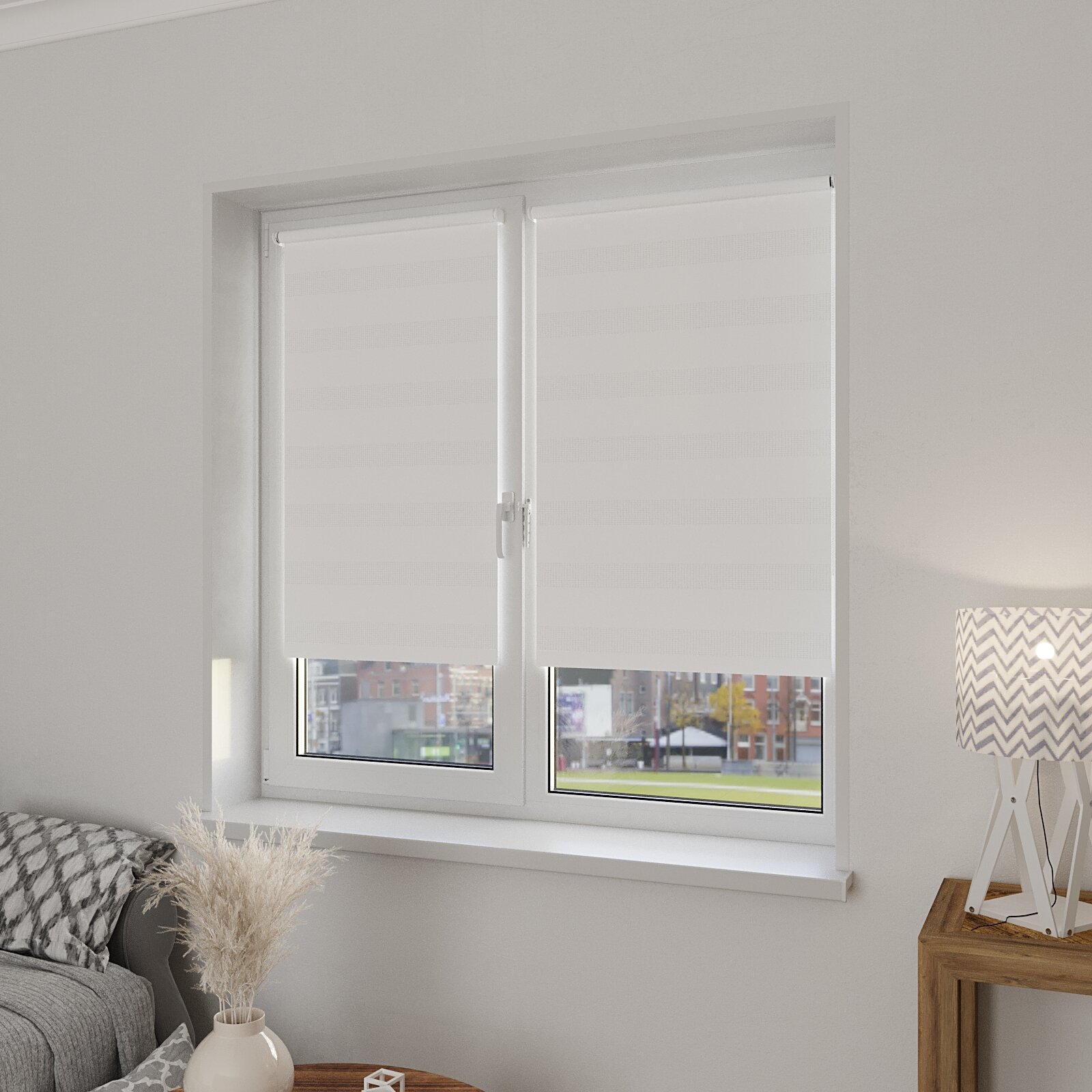 Рулонная штора с эффектом "день-ночь" Сандра 43х160 см, цвет белый