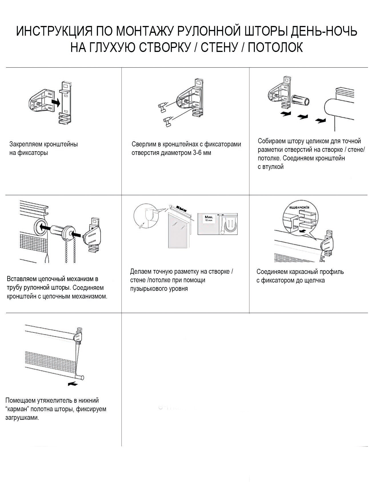 | Комплектация | рулонная штора в сборе, крепёжные скобы – 2 шт, комплект саморезов, прозрачные заглушки для нижнего утяжелителя |