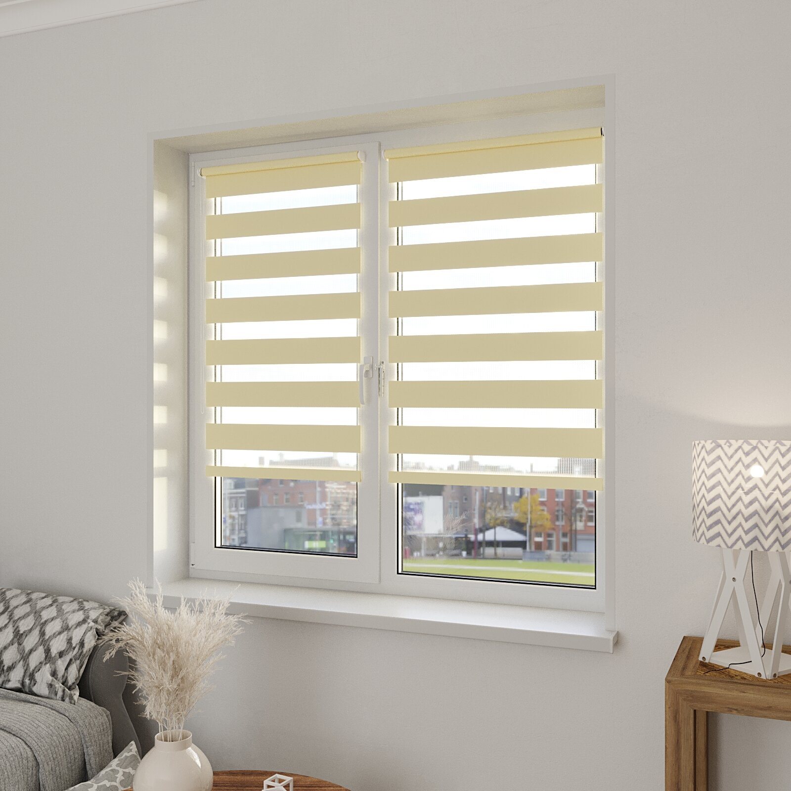 Рулонная штора с эффектом "день-ночь" Сандра 43х160 см, цвет светло-желтый