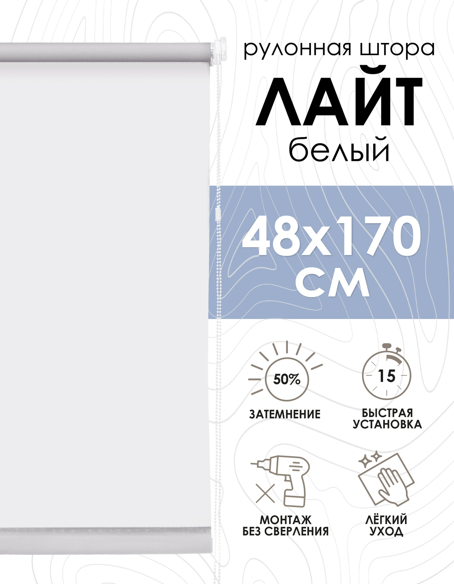 Купить Рулонные шторы, Лайт Белый, 48х170 см