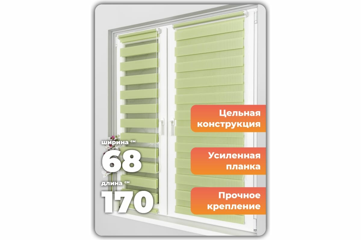 Рулонные шторы День-Ночь Фисташковая 68х170 см, Светонепроницаемость 70 % ORNETTA