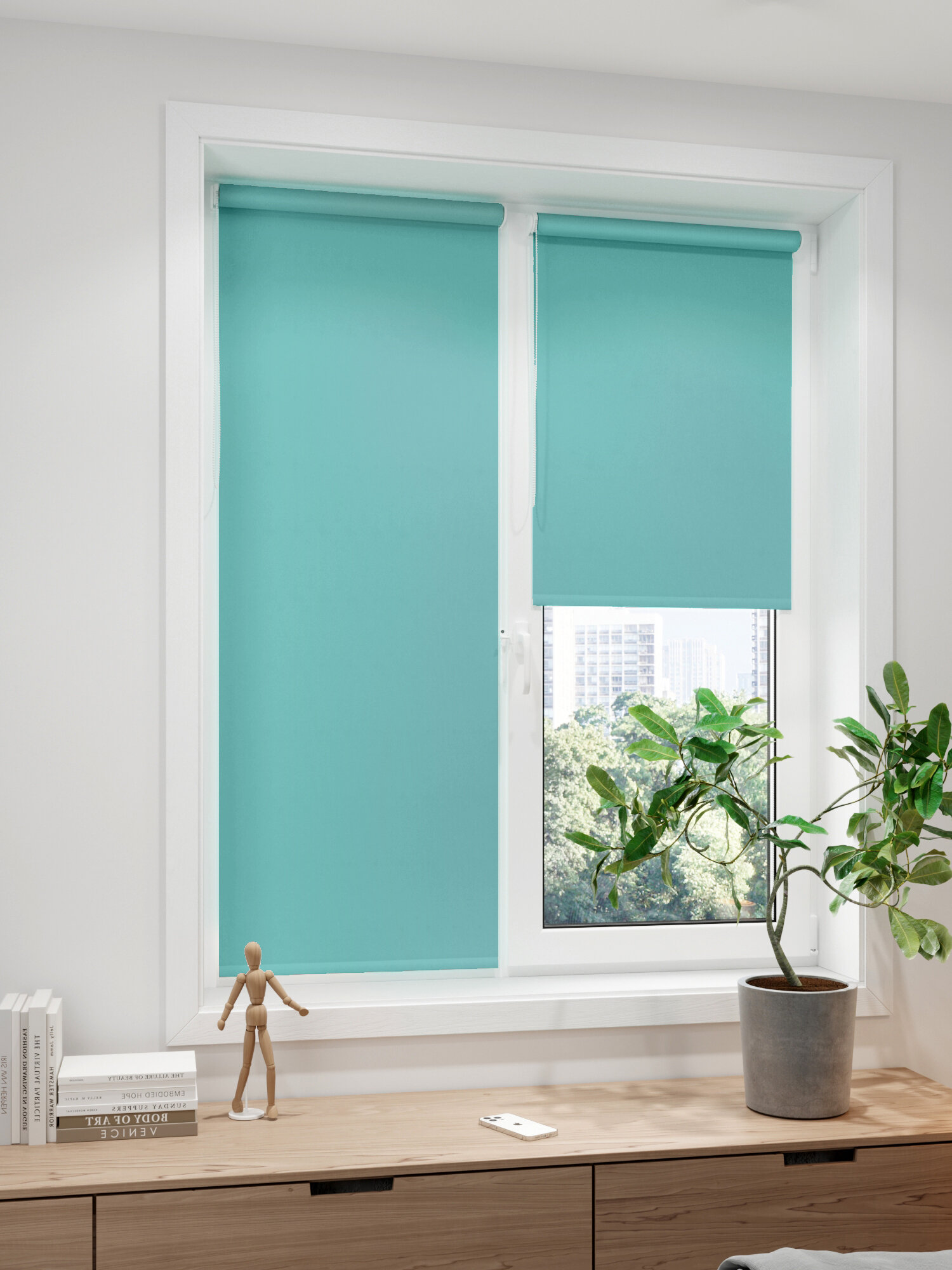 110*160 Универсальная рулонная штора с/з 80%, Однотонный аквамарин сет сбоку