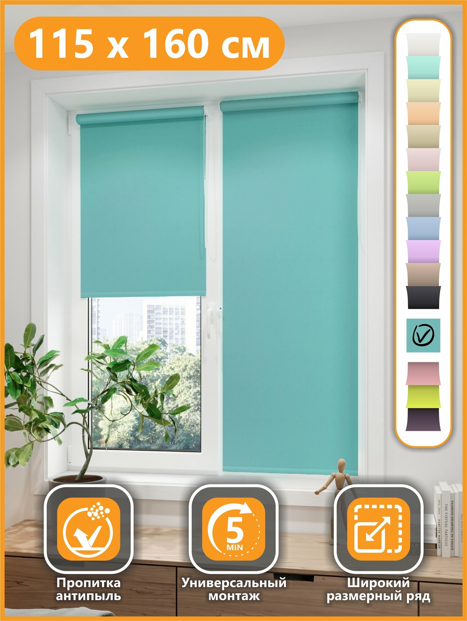 Сохранить115*160 Универсальная рулонная штора с/з 80%, Однотонный аквамарин сет сбоку интересное: