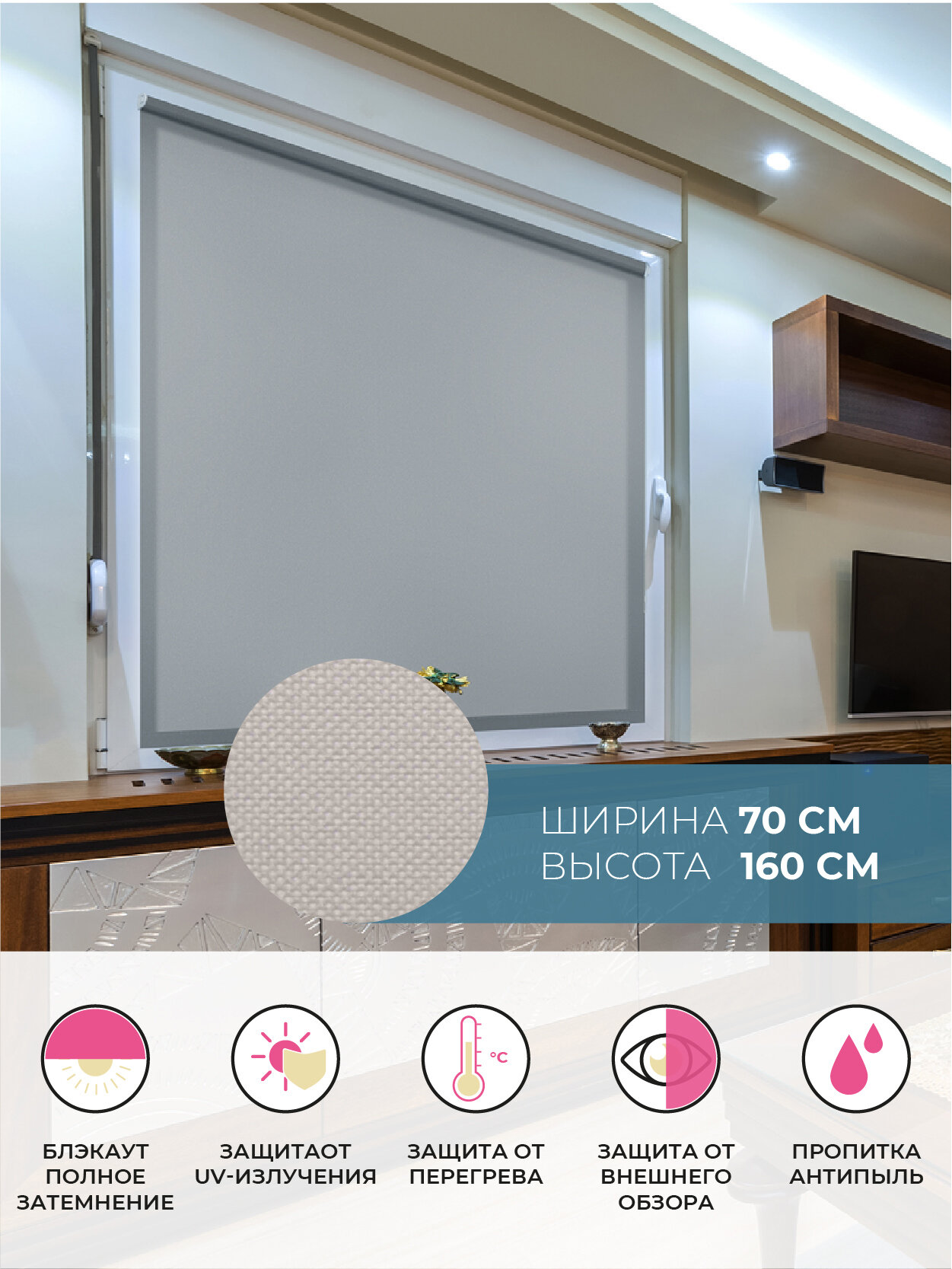 Рулонные шторы BLACKOUT / блэкаут 70 см x 160 см Морозный серый Плайн DECOFEST (Мини)
