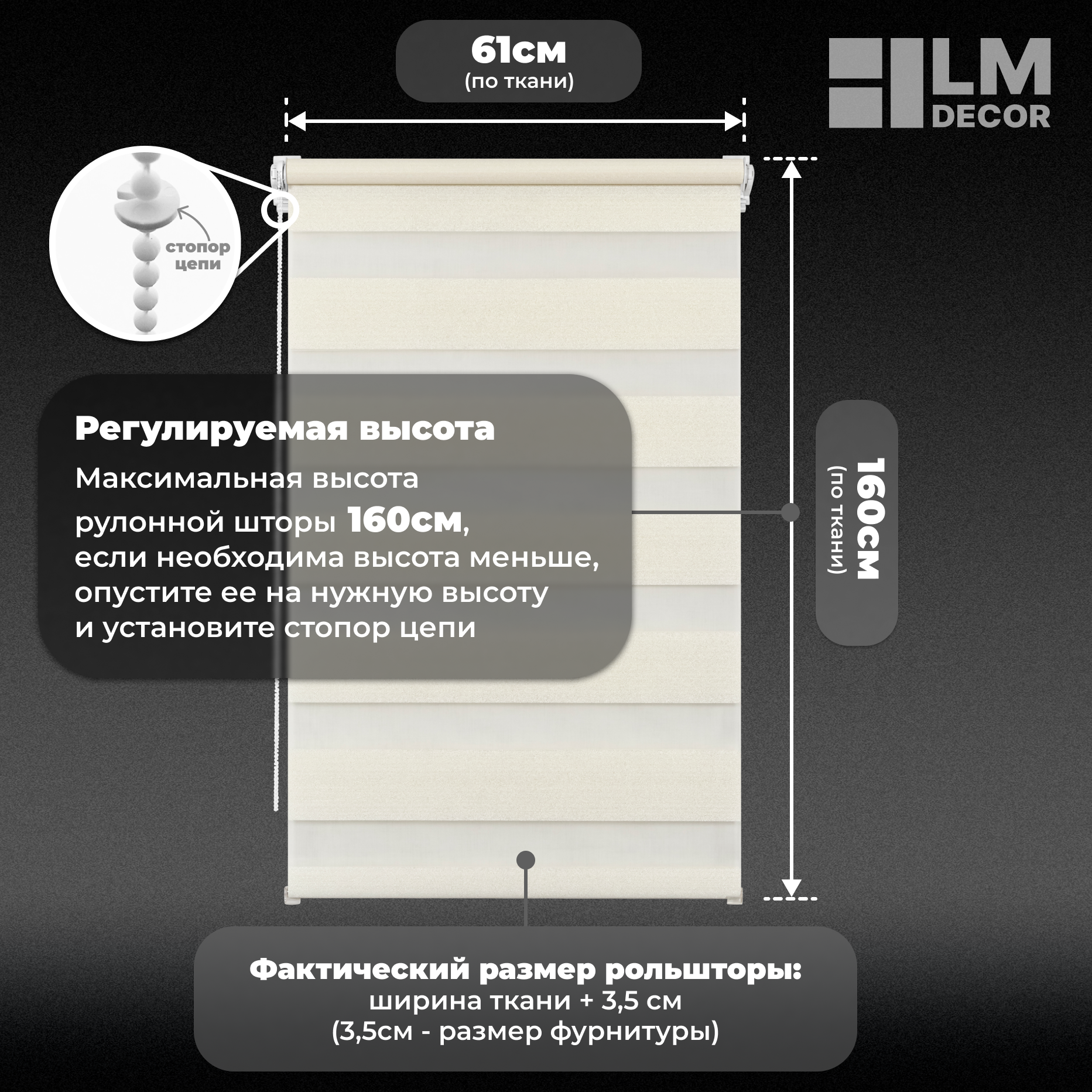 СохранитьРулонные шторы День-Ночь LM DECOR "Марсель" 02 светло-кремовый 61х160 см интересное: