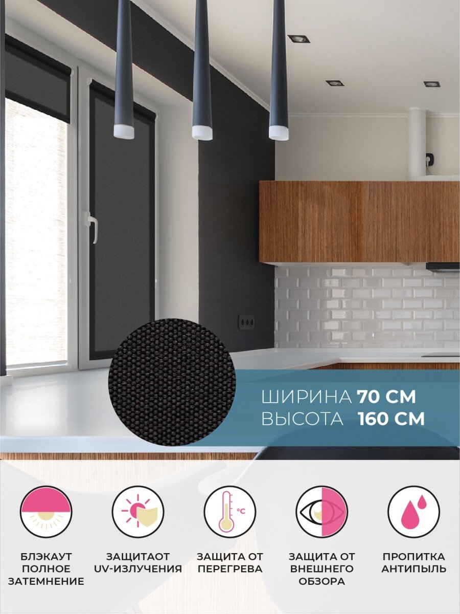 СохранитьРулонные шторы Блэкаут Плайн Черный DECOFEST 70 см на 160 см, жалюзи на окна интересное: