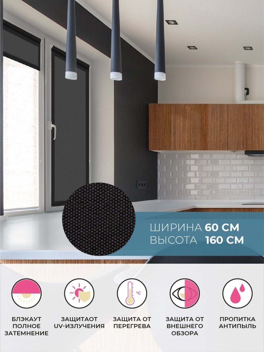 СохранитьШтора рулонная Блэкаут Плайн Черный 60x160 см интересное: