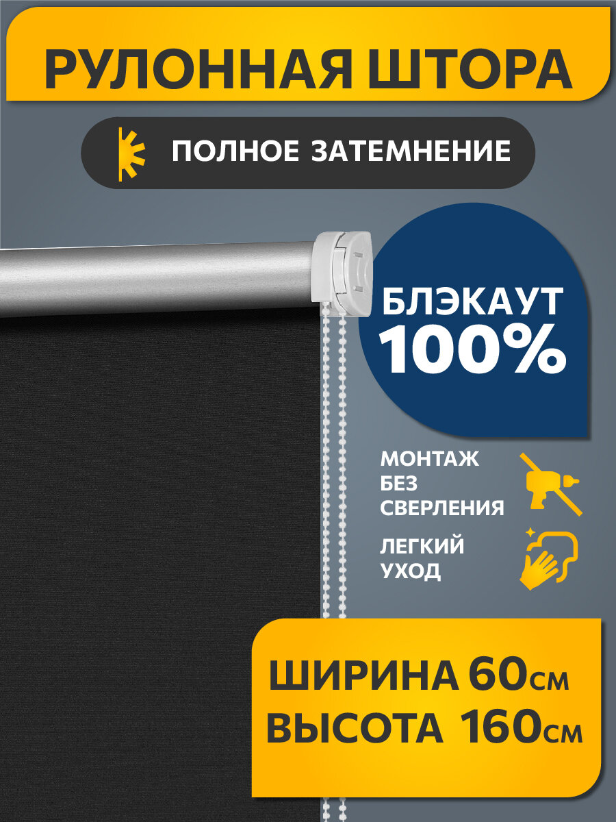 Рулонные шторы BLACKOUT / блэкаут 60 см х 160 см Черный Плайн DECOFEST (Мини)