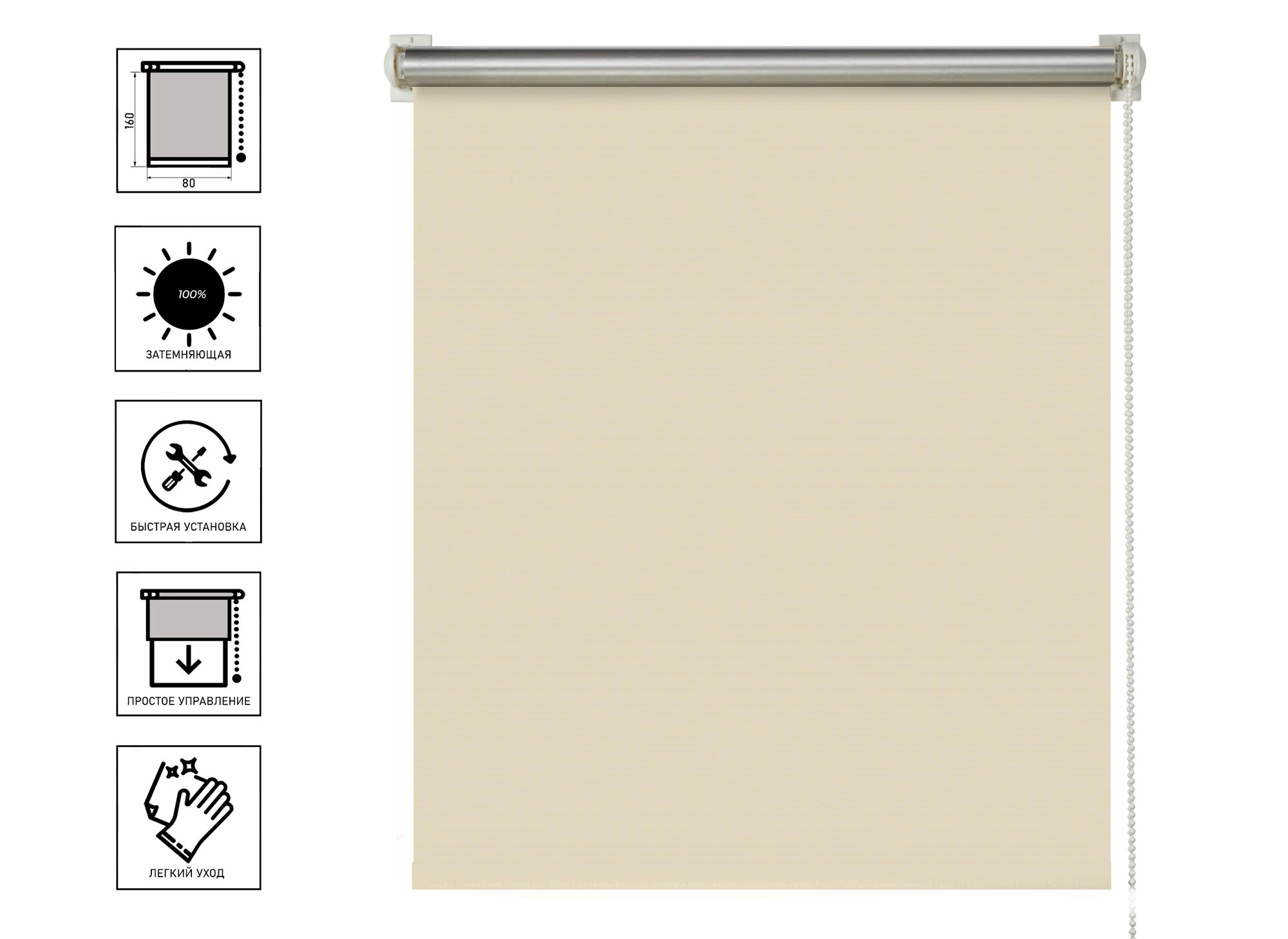 СохранитьШтора рулонная Блэкаут Плайн Кремово-бежевый 80x160 см интересное: