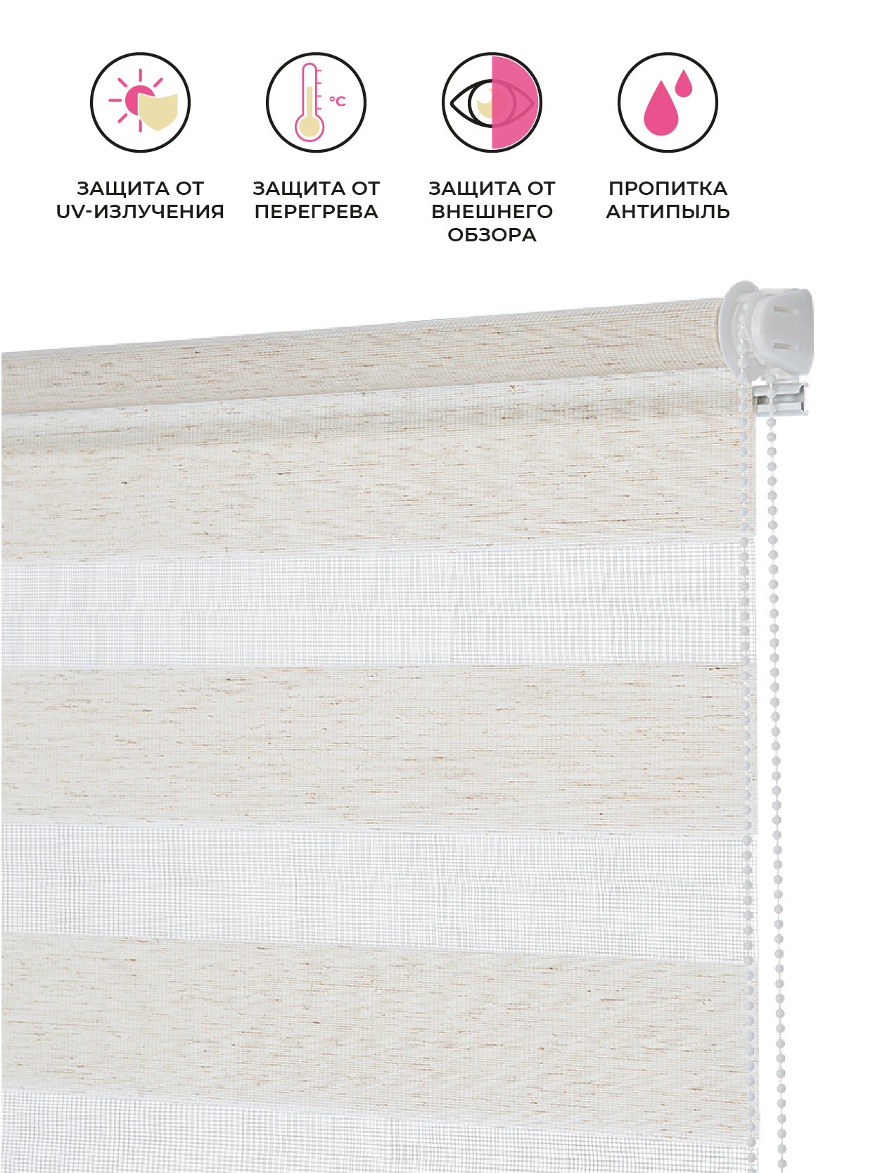 Рулонная штора день-ночь Decofest Бейс эко-бежевый, 140 x 180 см