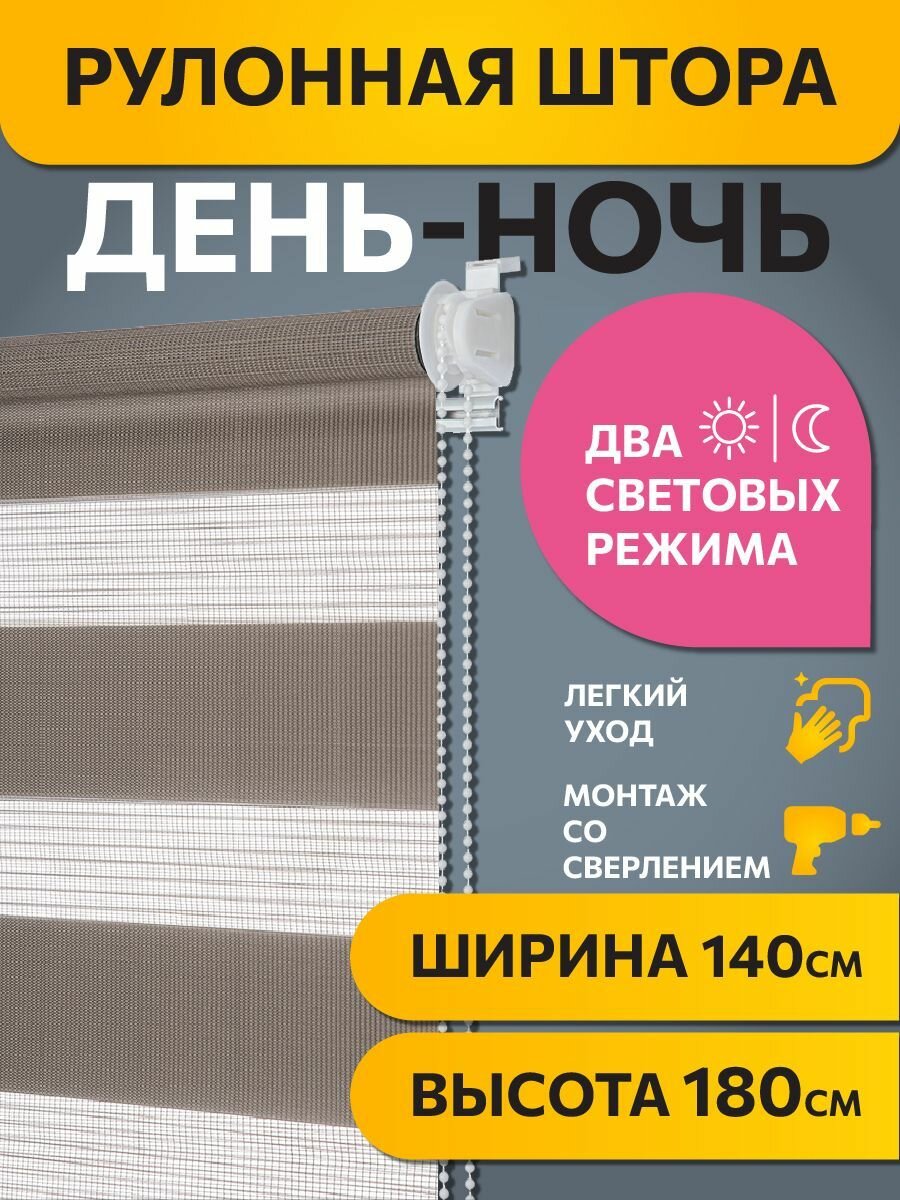 Рулонные шторы день ночь 140 см х 180 см Шоколадный Бейс DECOFEST