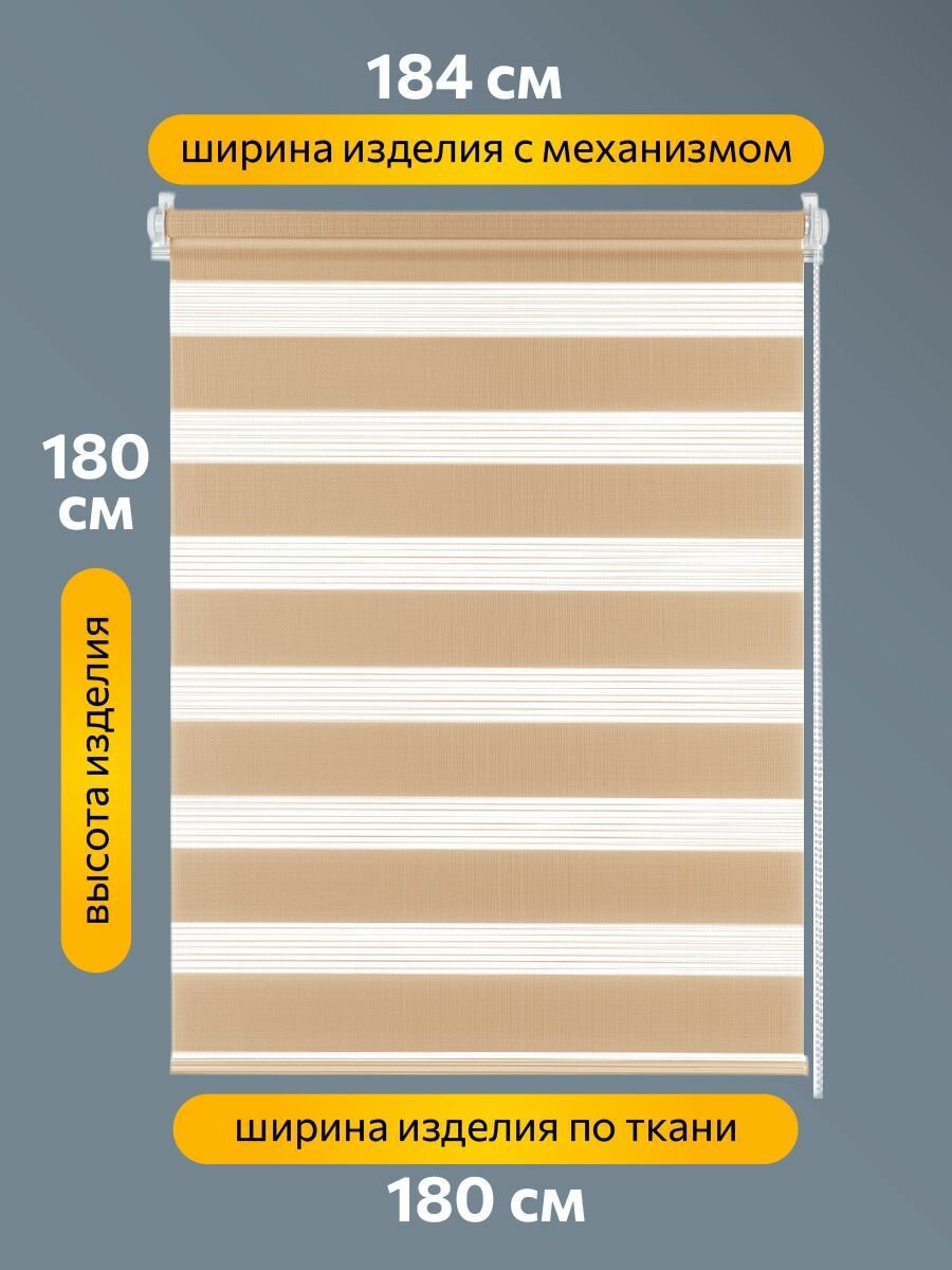 Рулонные шторы день ночь Бейс Бежевый DECOFEST 180 см x 180 см, жалюзи на окно