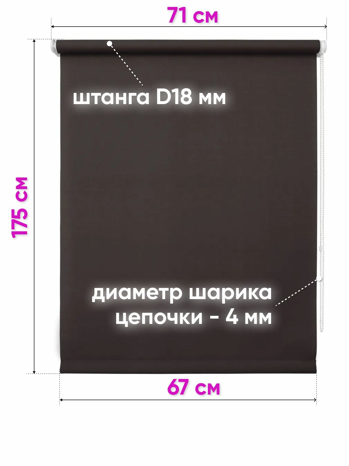 Рулонные шторы на окна 61 х 175 см Лен шоколад - Жалюзи на кухню и в детскую