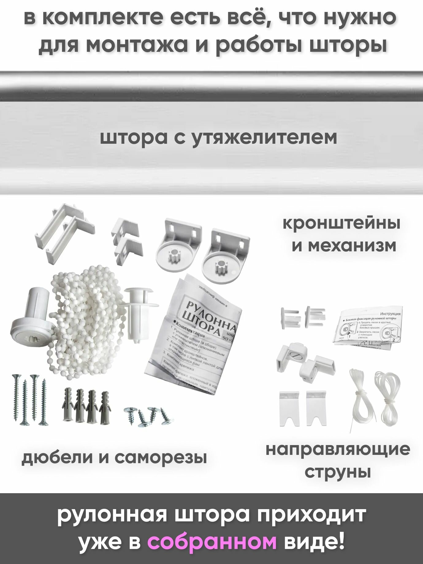 Рулонные шторы на пластиковые окна 70 x 175 см Лен белый - Жалюзи с направляющими струнами