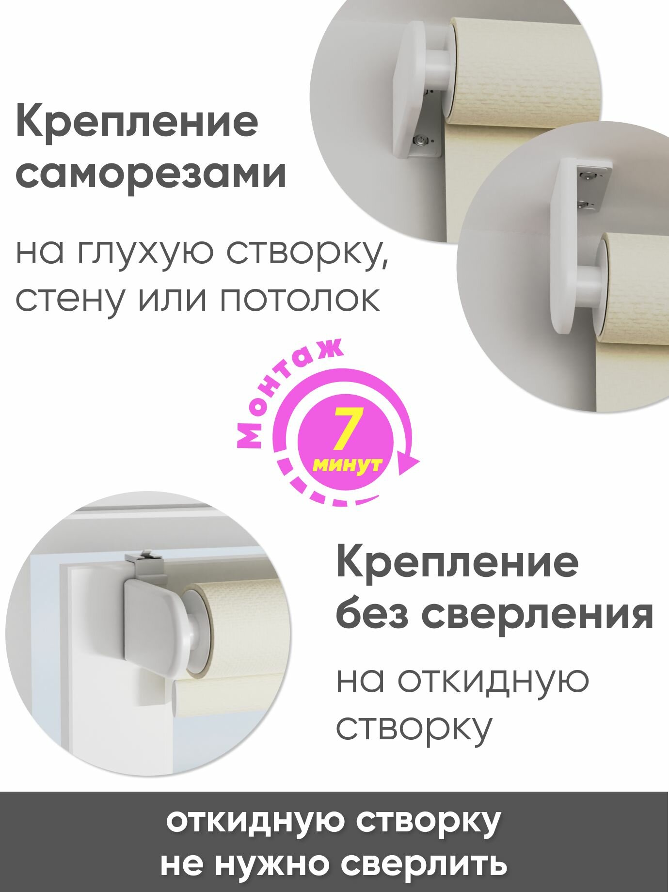 Рулонные шторы на окна без сверления 72 х 175 см Лен белый - Жалюзи рольшторы
