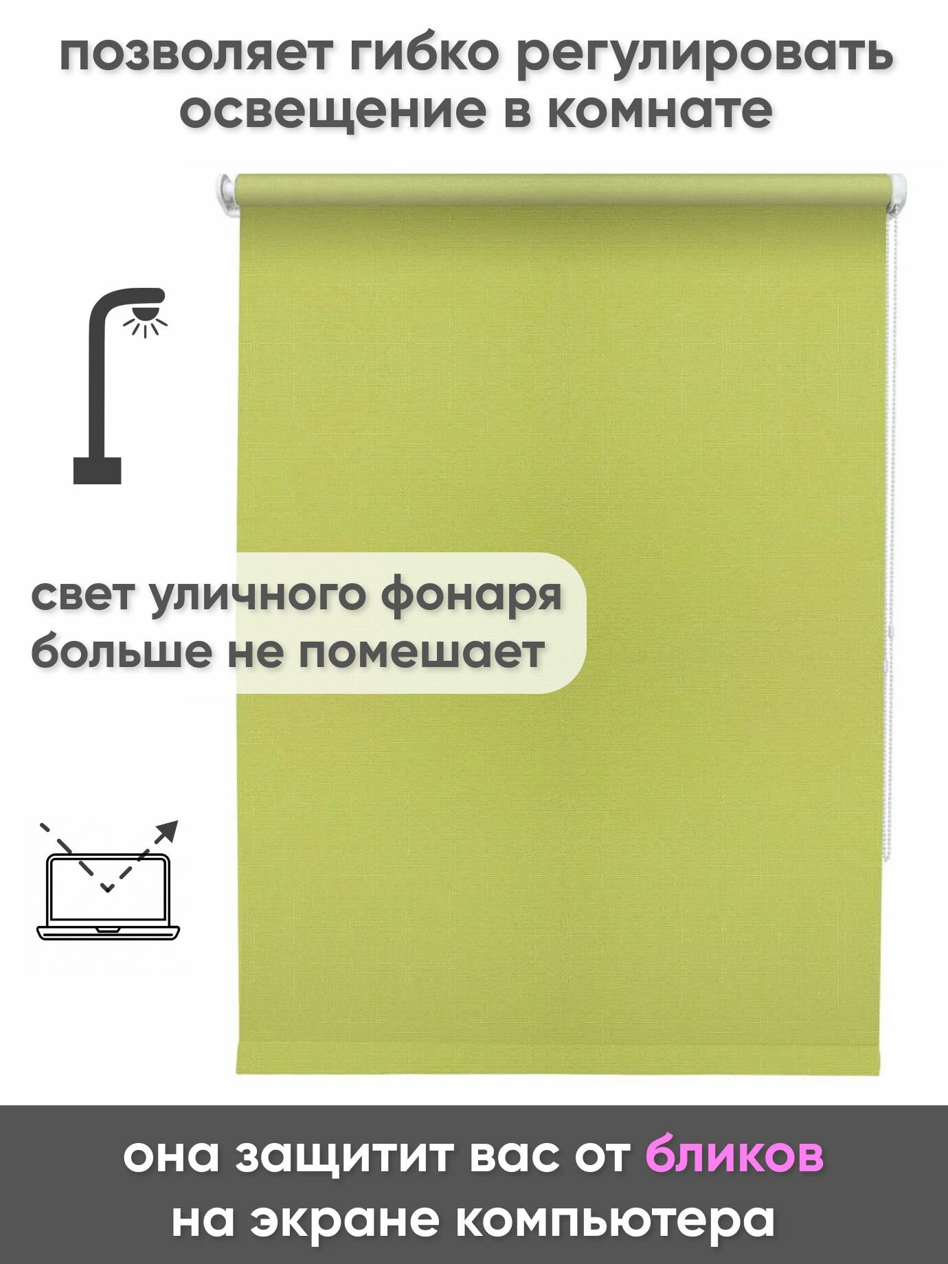 СохранитьРулонная штора на окна 140 x 175 см Лен салатовый - Жалюзи рольшторы интересное: