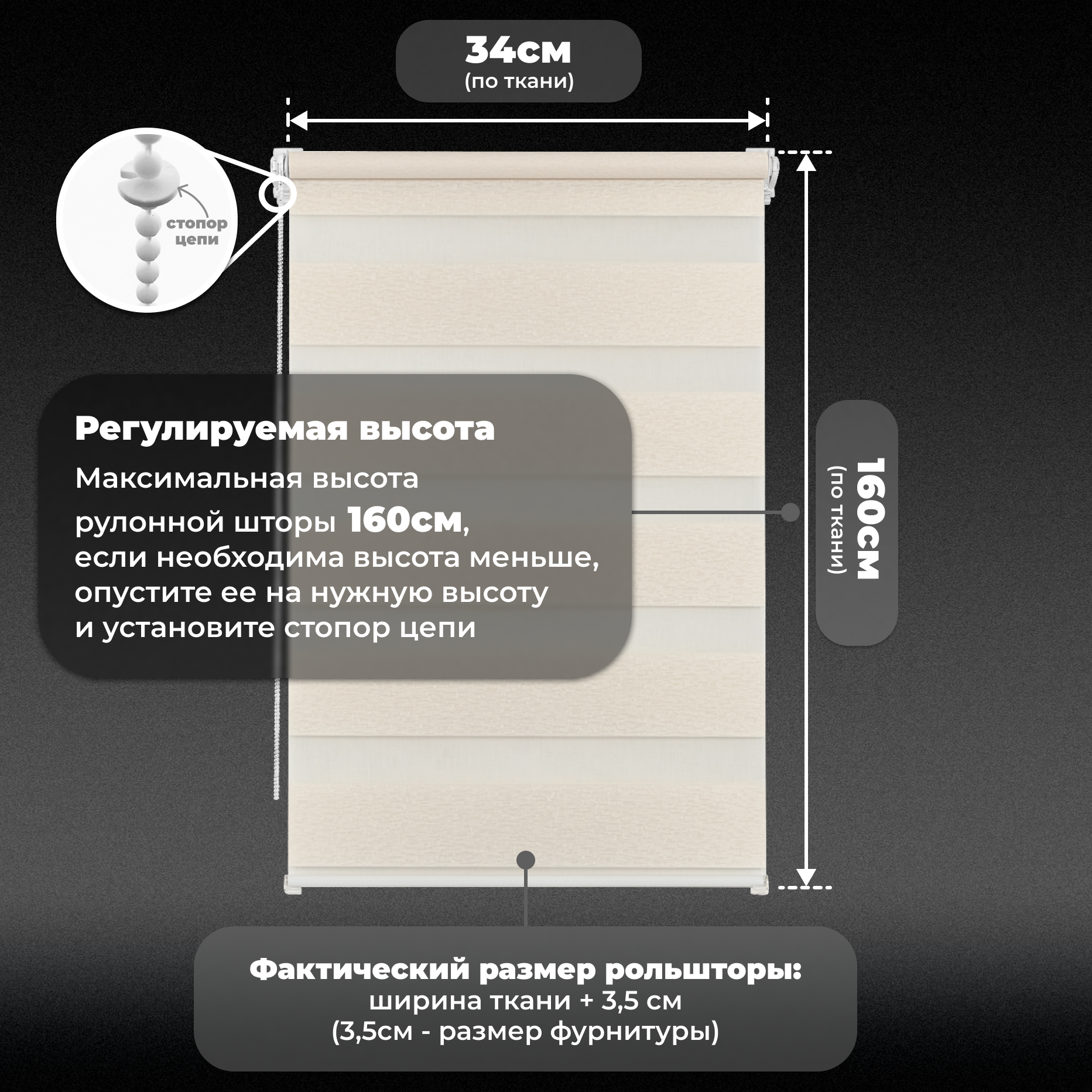Купить Рулонные шторы LM DECOR "Сити" 01 День/Ночь Кремовый 34х160 см