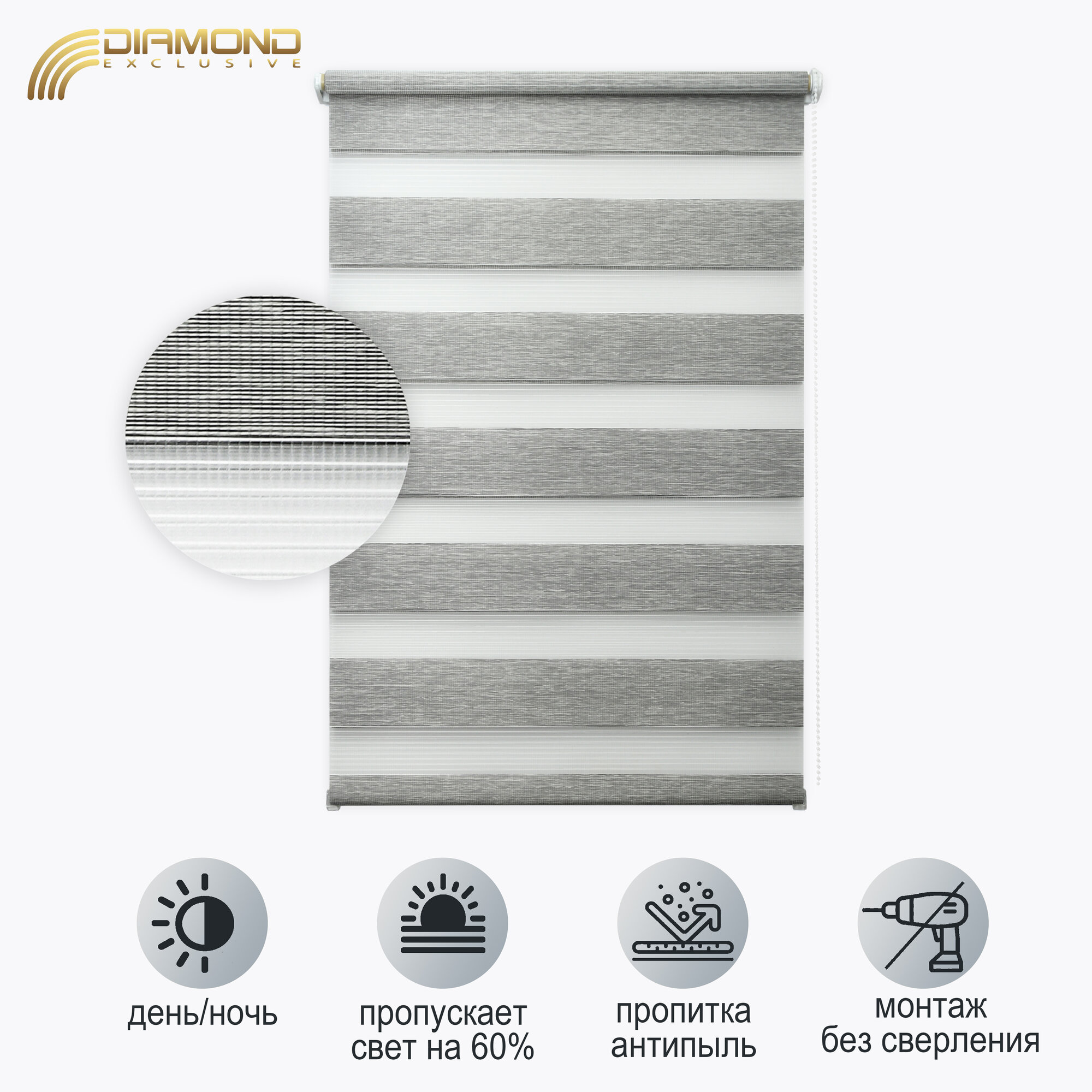 Рулонная штора с эффектом "день-ночь" Шарлотта 61х160 см, цвет серый