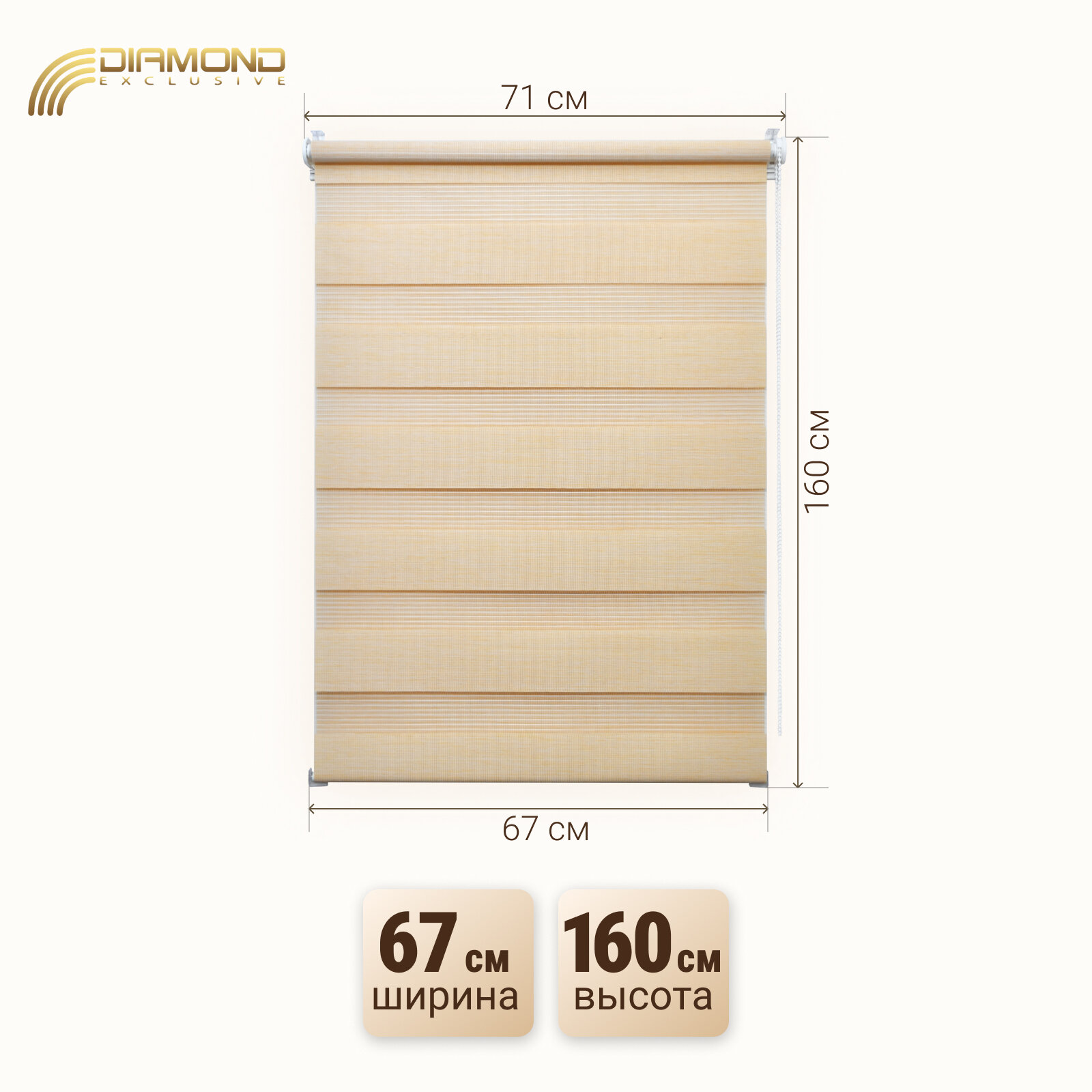 СохранитьРулонная штора с эффектом "день-ночь" Шарлотта 67х160 см, цвет бежевый интересное: