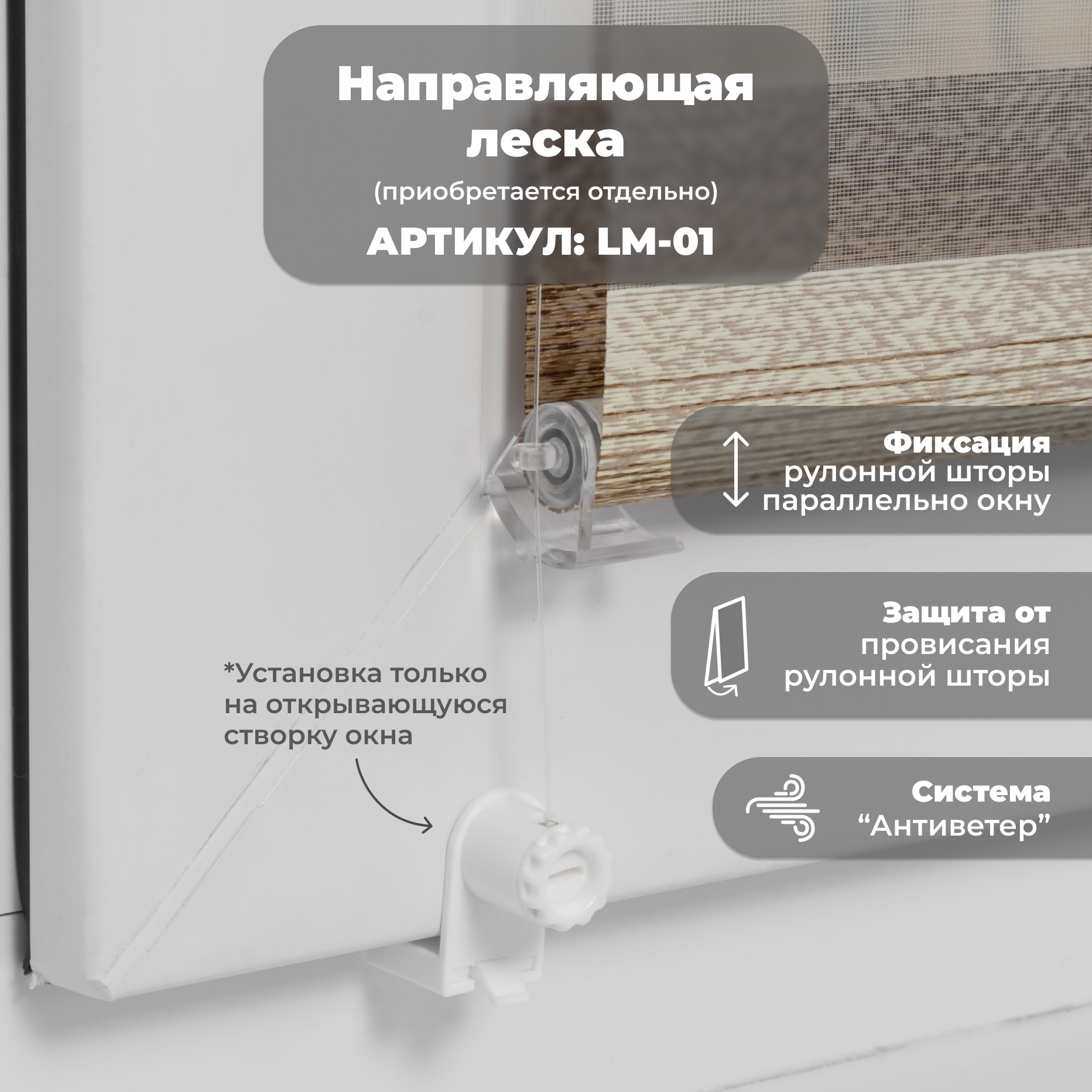| Дополнительная информация | Несколько вариантов установки: без сверления на пластиковое глухое окно или с поворотно-откидным механизмом; со сверлением - на любое окно, на неподвижную раму, на стену (оконный проем), на раму, к потолку, в проем. |