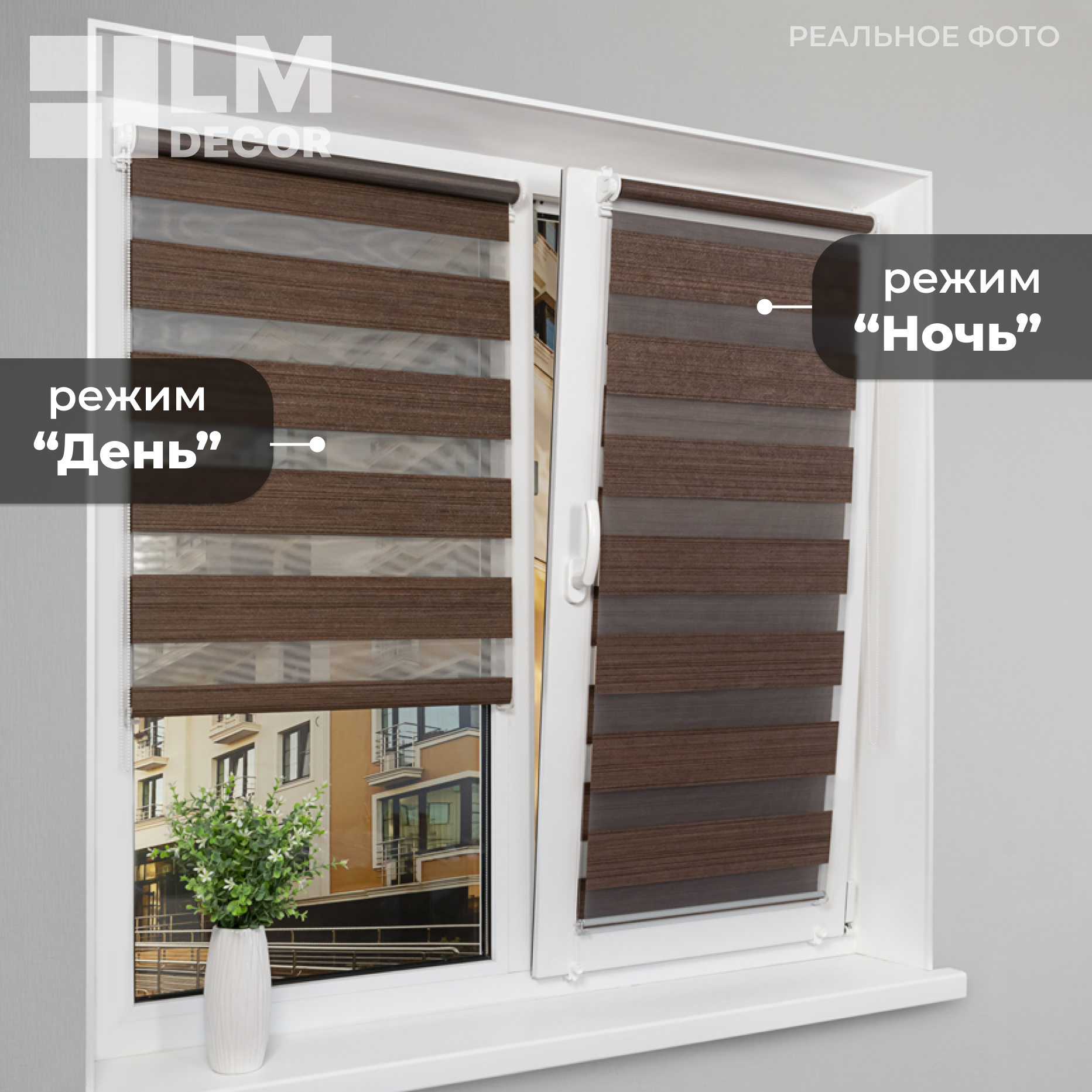Рулонные шторы День-Ночь LM DECOR "Марсель" 06 шоколадный 43х160 см