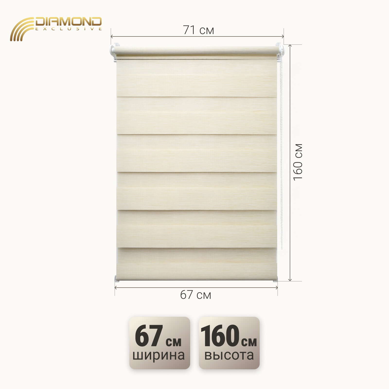 Купить Рулонная штора с эффектом "день-ночь" Алисия 67х160 см, цвет кремовый