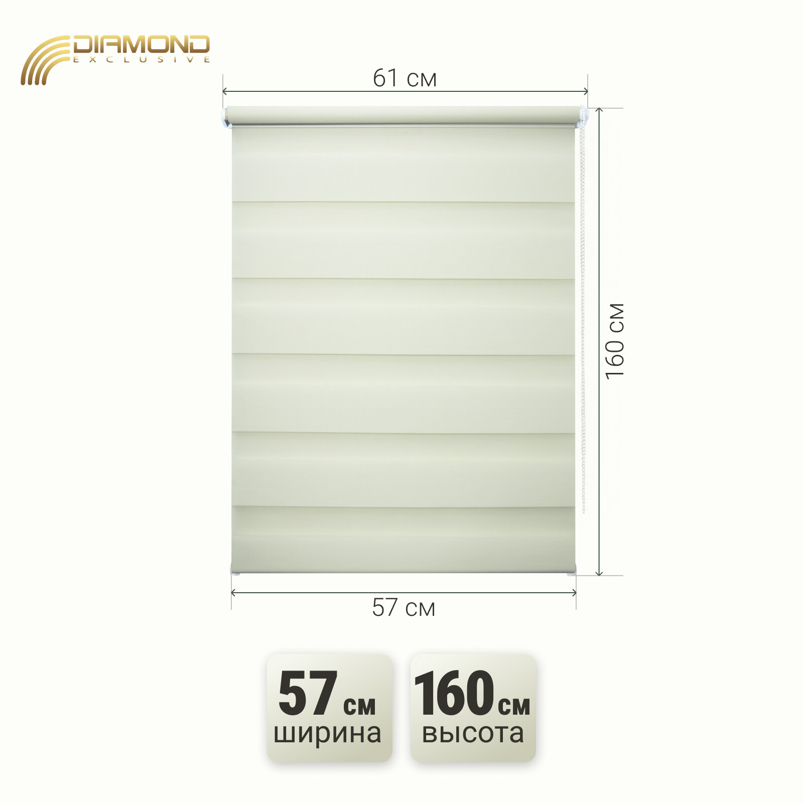 Рулонная штора с эффектом "день-ночь" Алисия 61х160 см, цвет кремовый