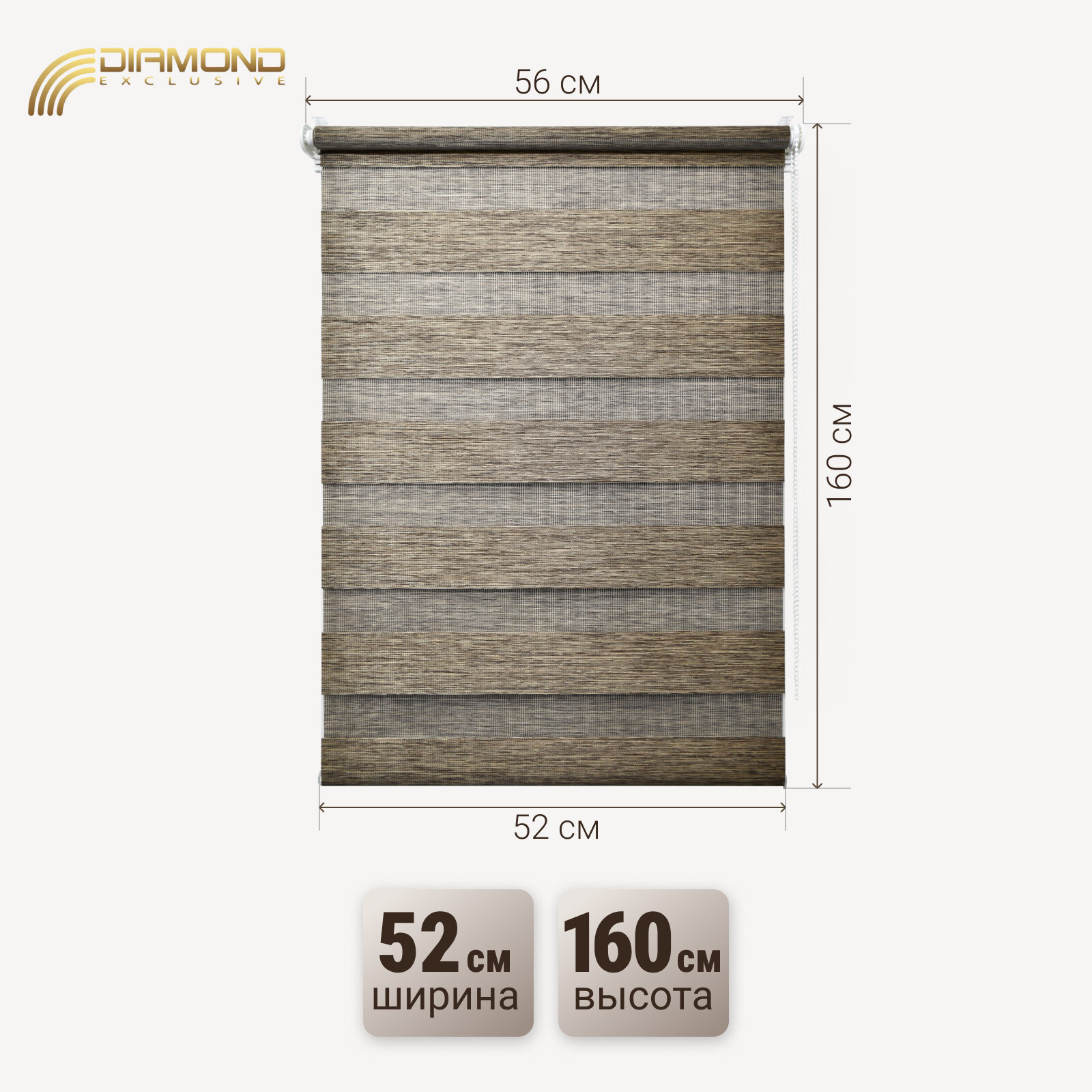 Рулонная штора с эффектом "день-ночь" Алисия 54х160 см, цвет шоколад