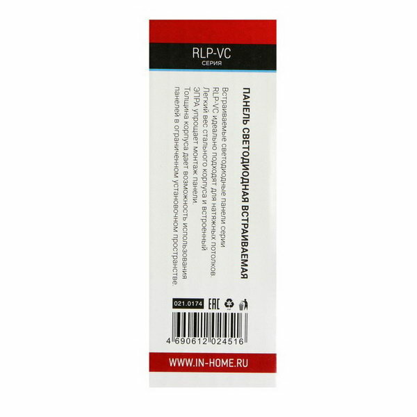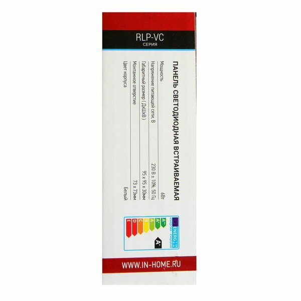 | Комплектация | Светильник встраиваемый In Home RLP-VC 6Вт 230В 6500К 420Лм IP40 95мм белый |