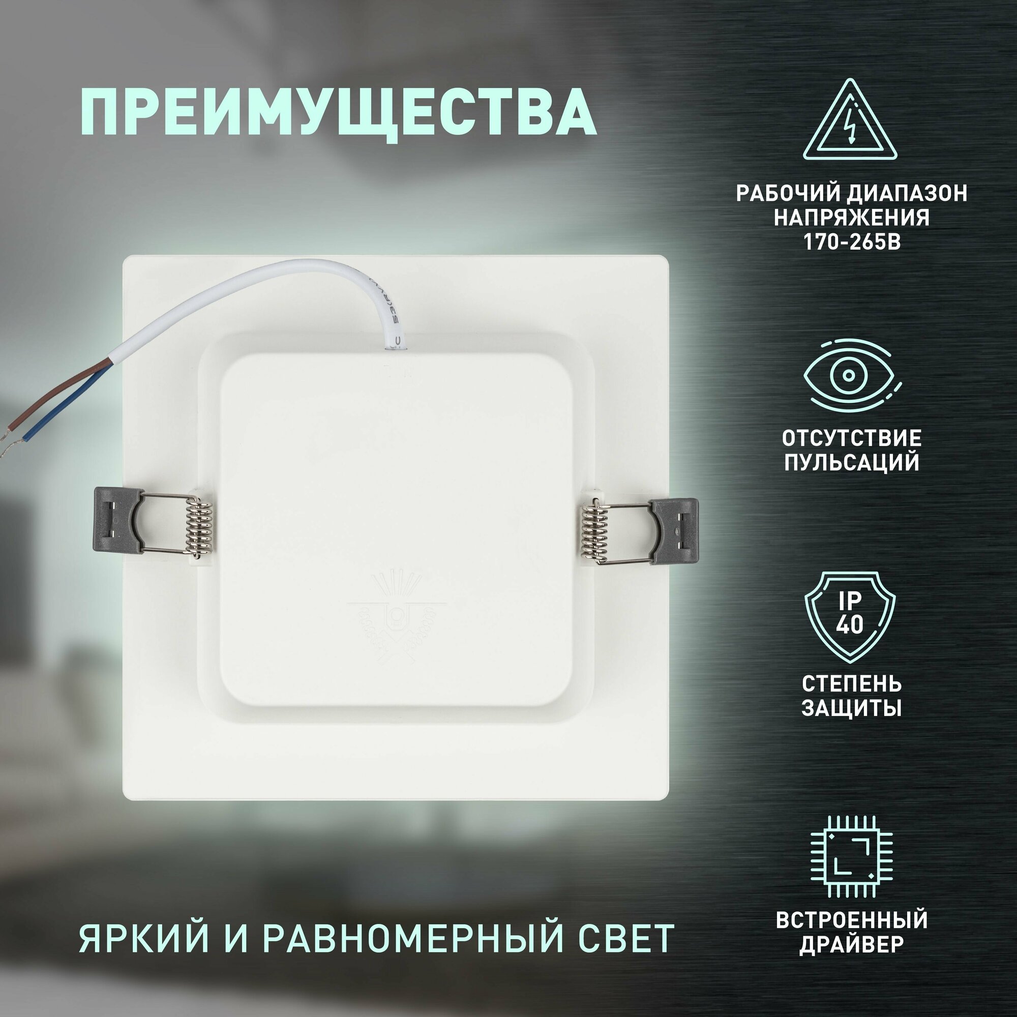 Светильник светодиодный 2-3-4K 3Вт 220В 4000К квадратный Эра, ЭРА Б0031158 (1 шт.)