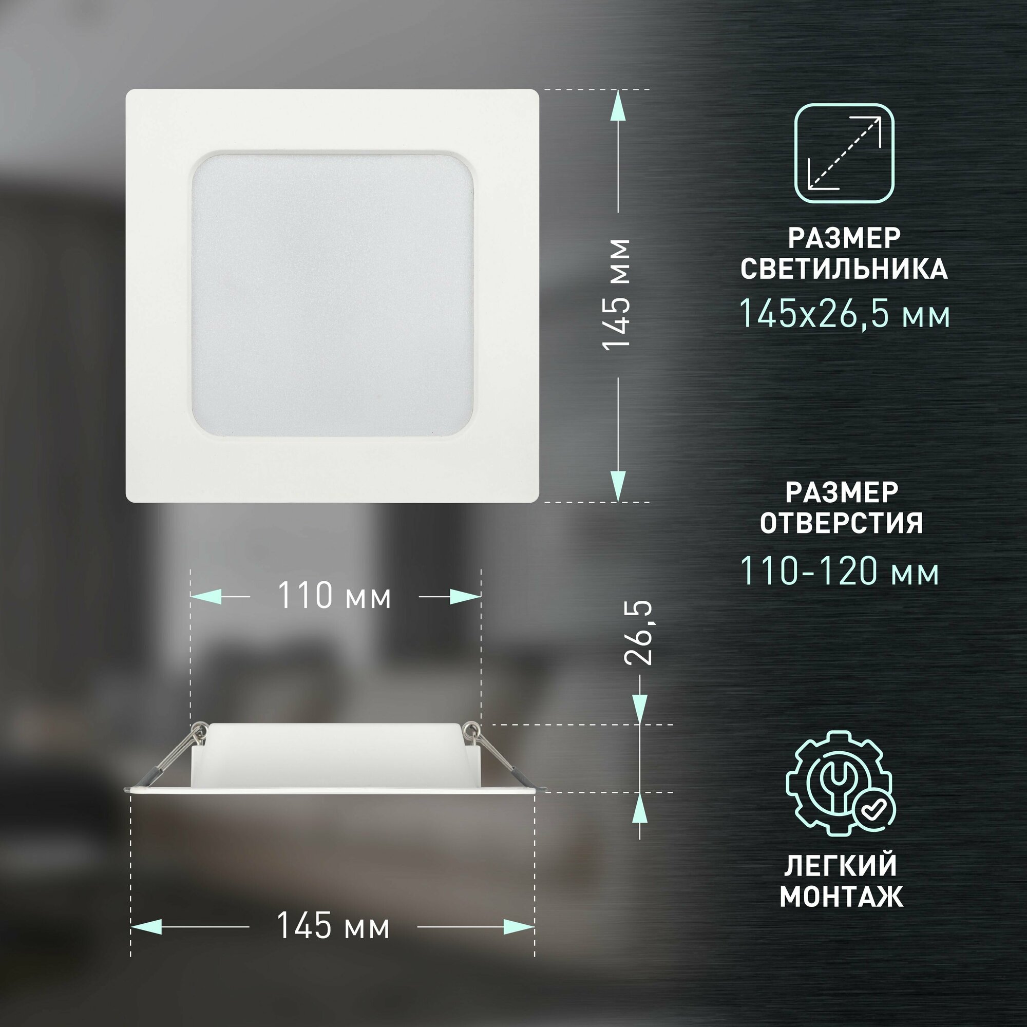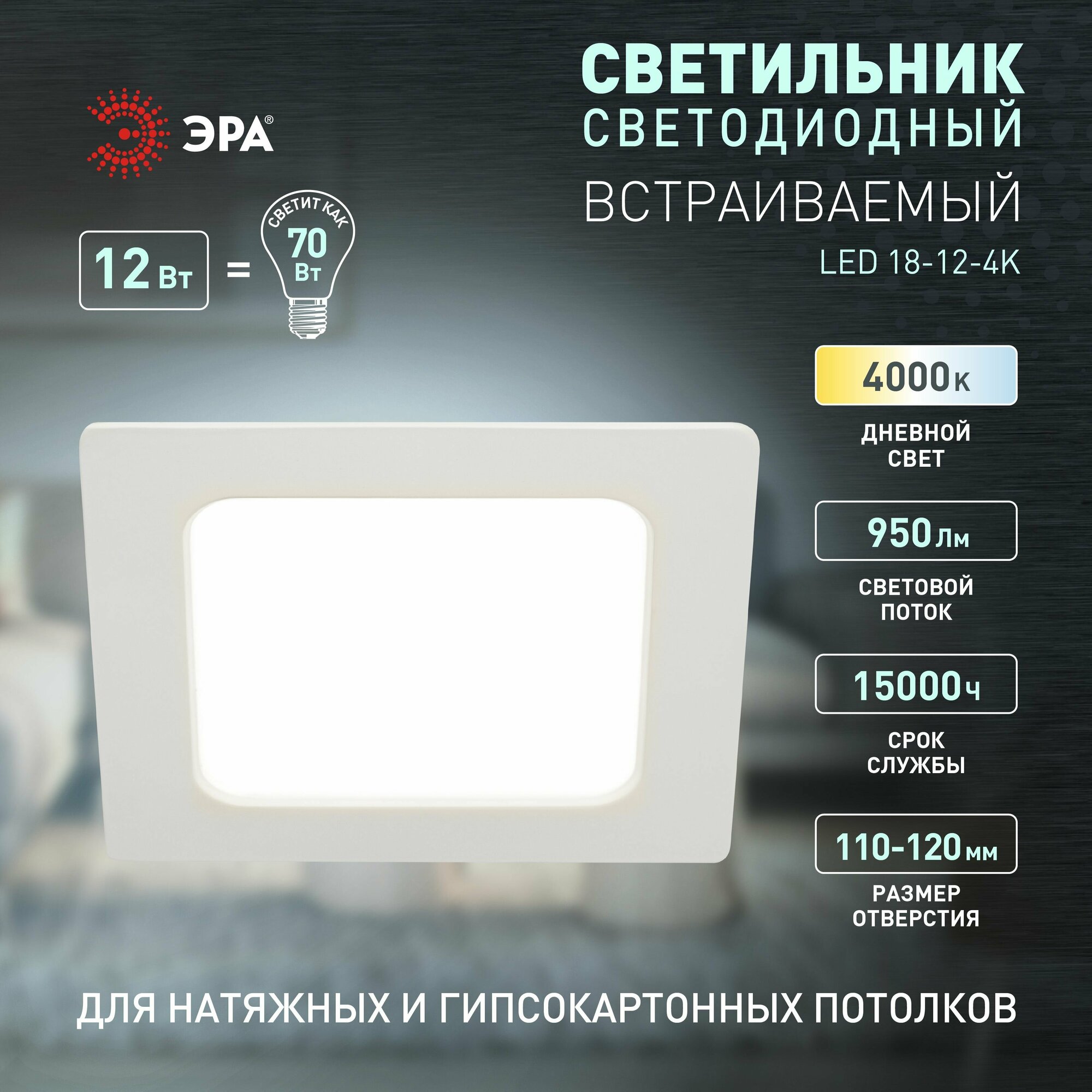 ЭРА Светильник светодиодный встраиваемый LED 18126K квадратный 12Вт 6500К Б0057444