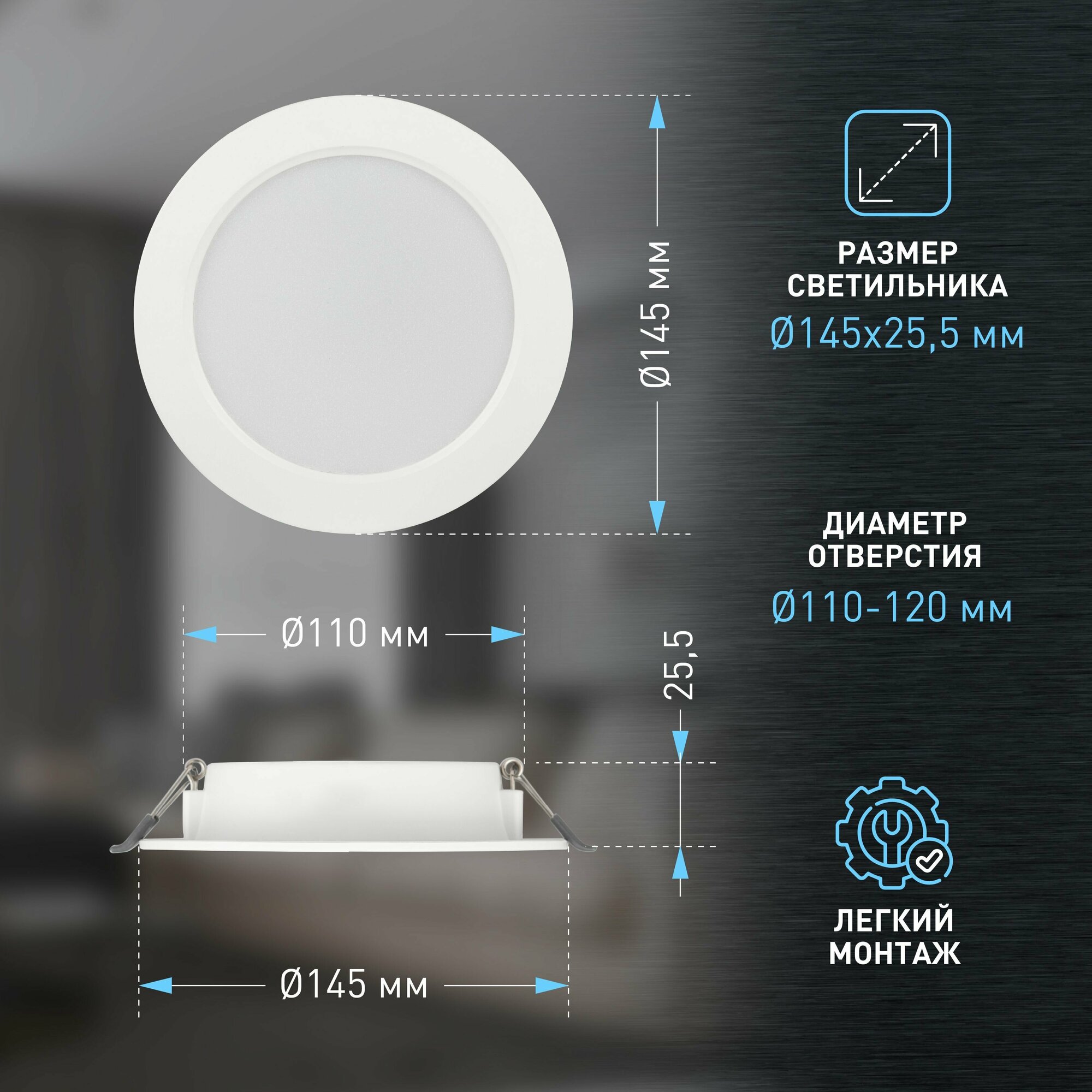 | Ширина/диаметр врезного отверстия | 110 мм |