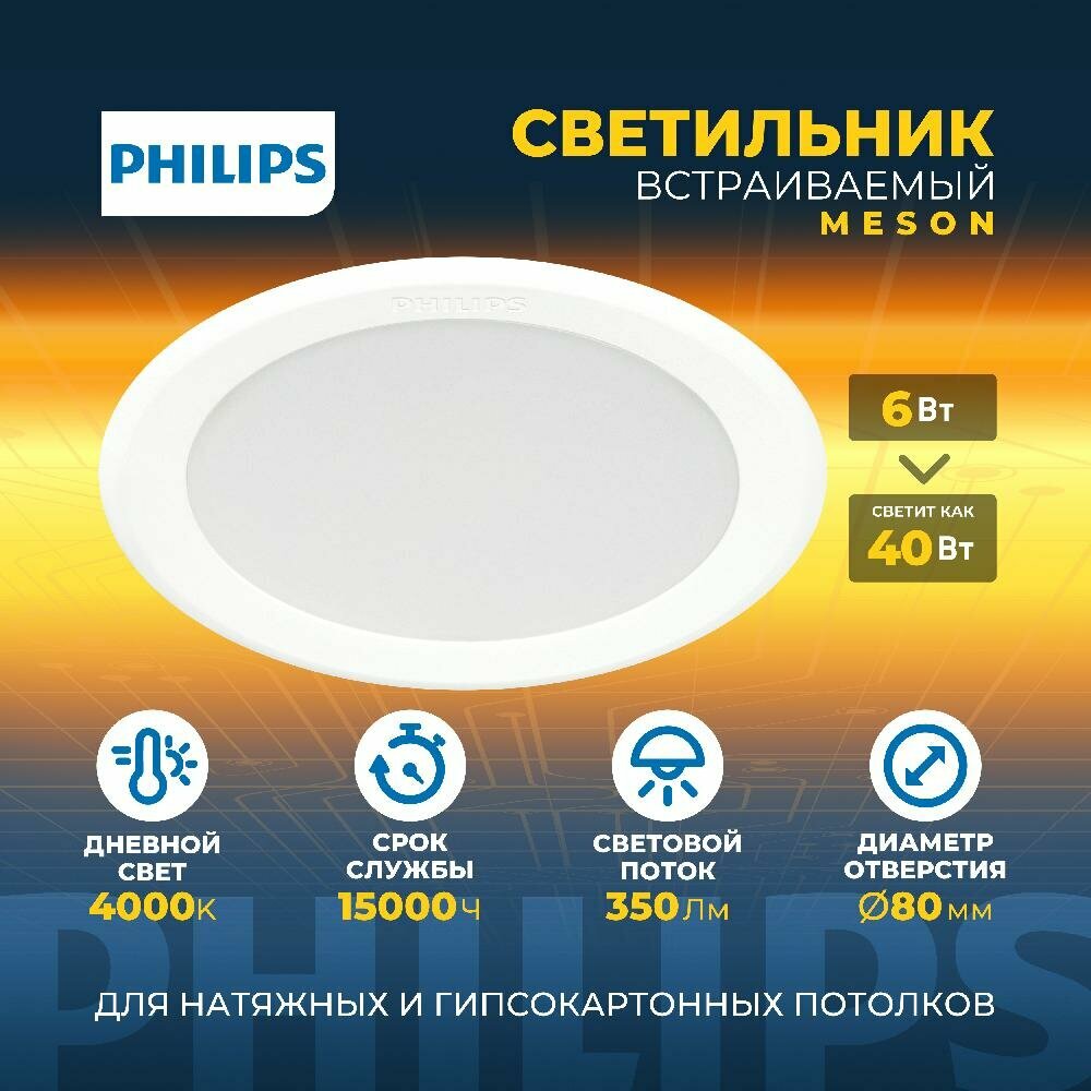 Точечный светильник Philips 6 Вт LED 4000 К белый интересное: