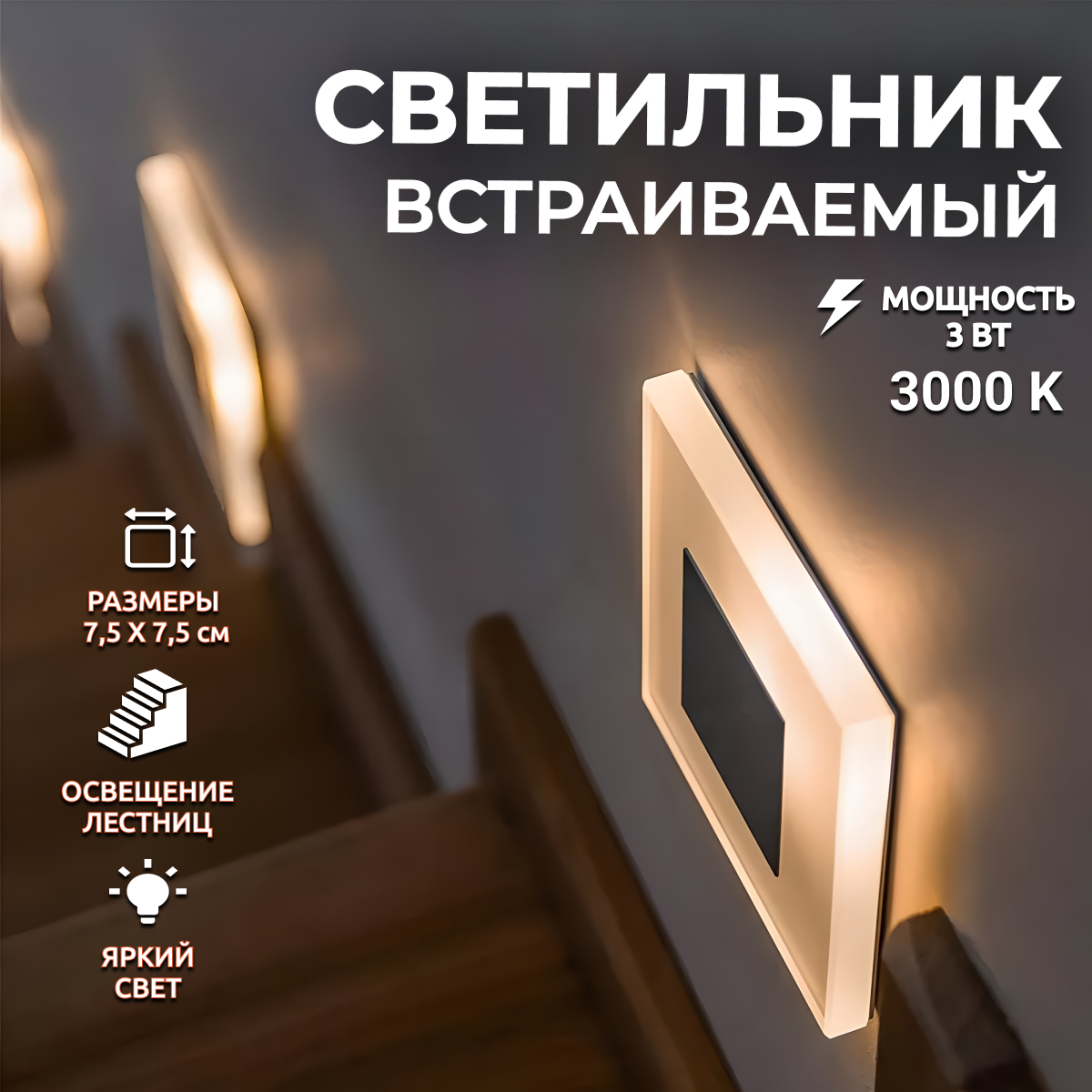 Cветильник встраиваемый настенный без подрозетника. LED 3W 3000K Свет теплый белый. Подсветка лестницы. интересное: