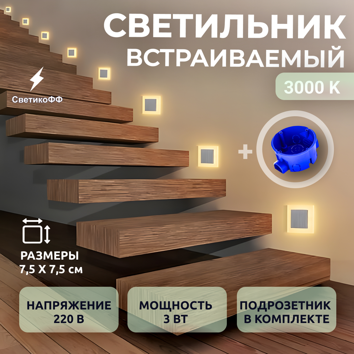 Светильник 3000K с подрозетником встраиваемый настенный LED интересное: