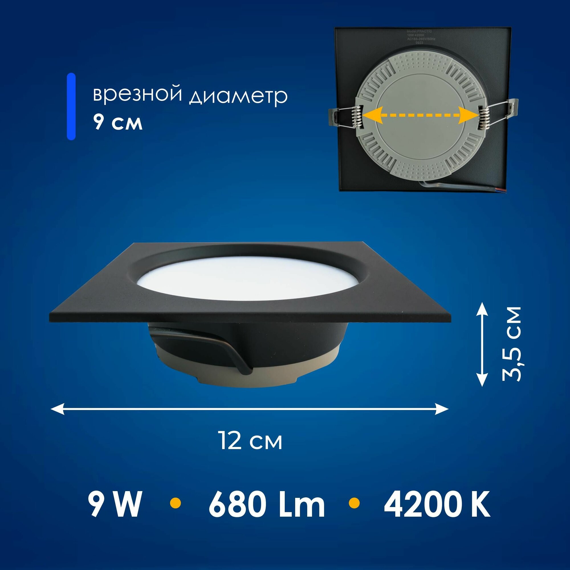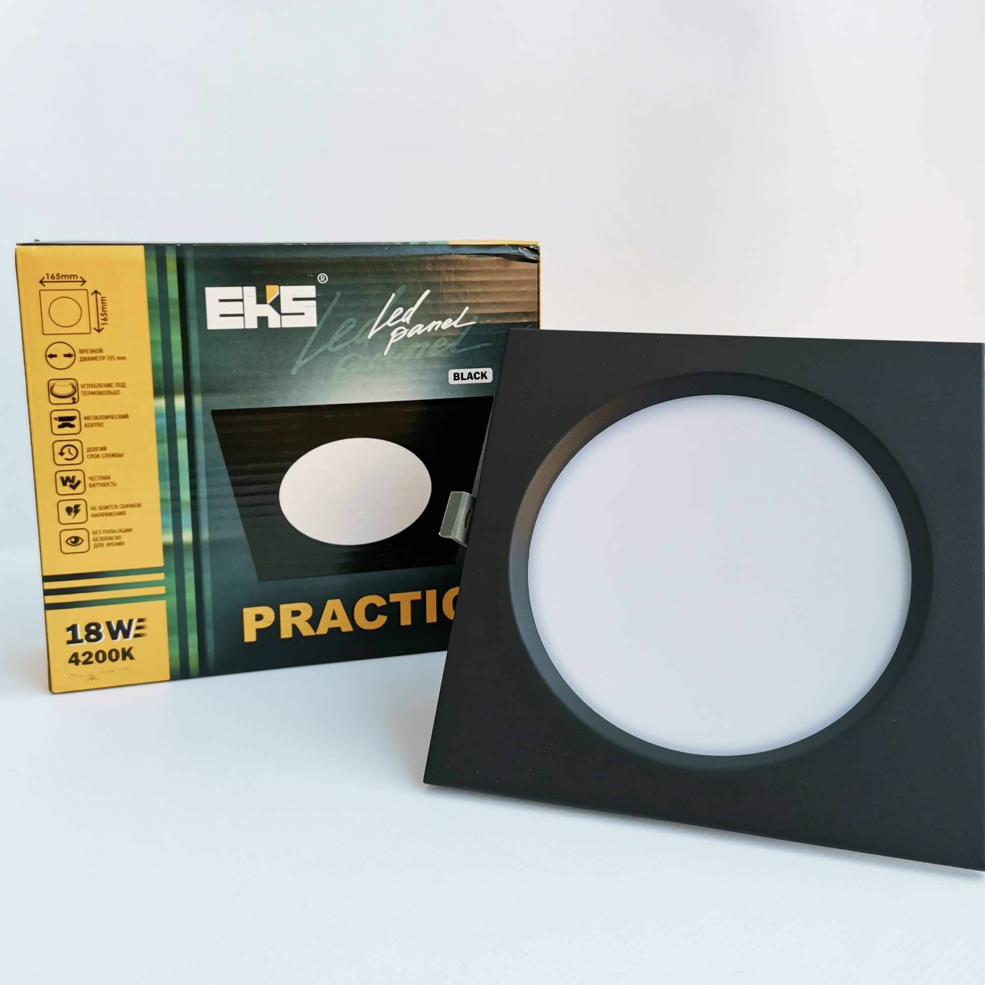 Встраиваемый светильник EKS PRACTIC - Светодиодная панель, LED панель в черном корпусе (9 Вт, 680Лм, 4200К), 1 шт. интересное: