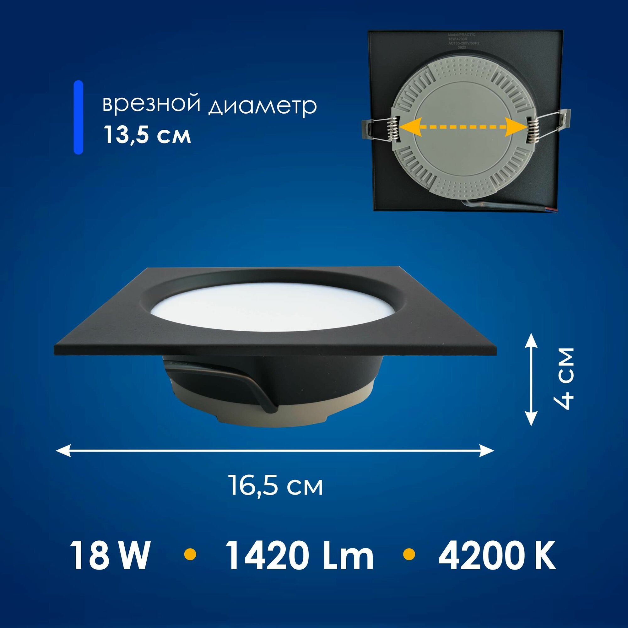 Встраиваемый светильник EKS PRACTIC - Светодиодная панель, LED панель в черном корпусе (18 Вт, 1420Лм, 4200К), 1 шт. интересное:
