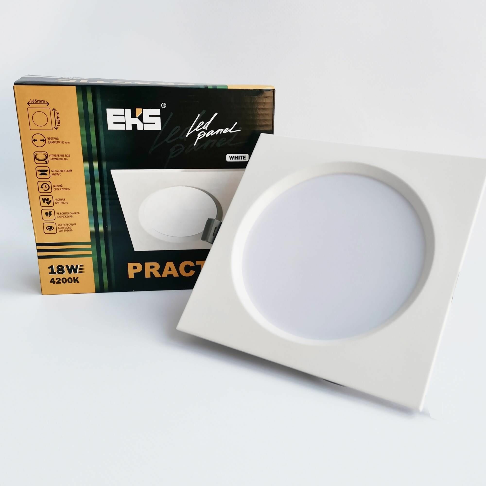 Встраиваемый светильник EKS PRACTIC - Светодиодная панель, LED панель в белом корпусе (18 Вт, 1420Лм, 4200К), 1 шт.