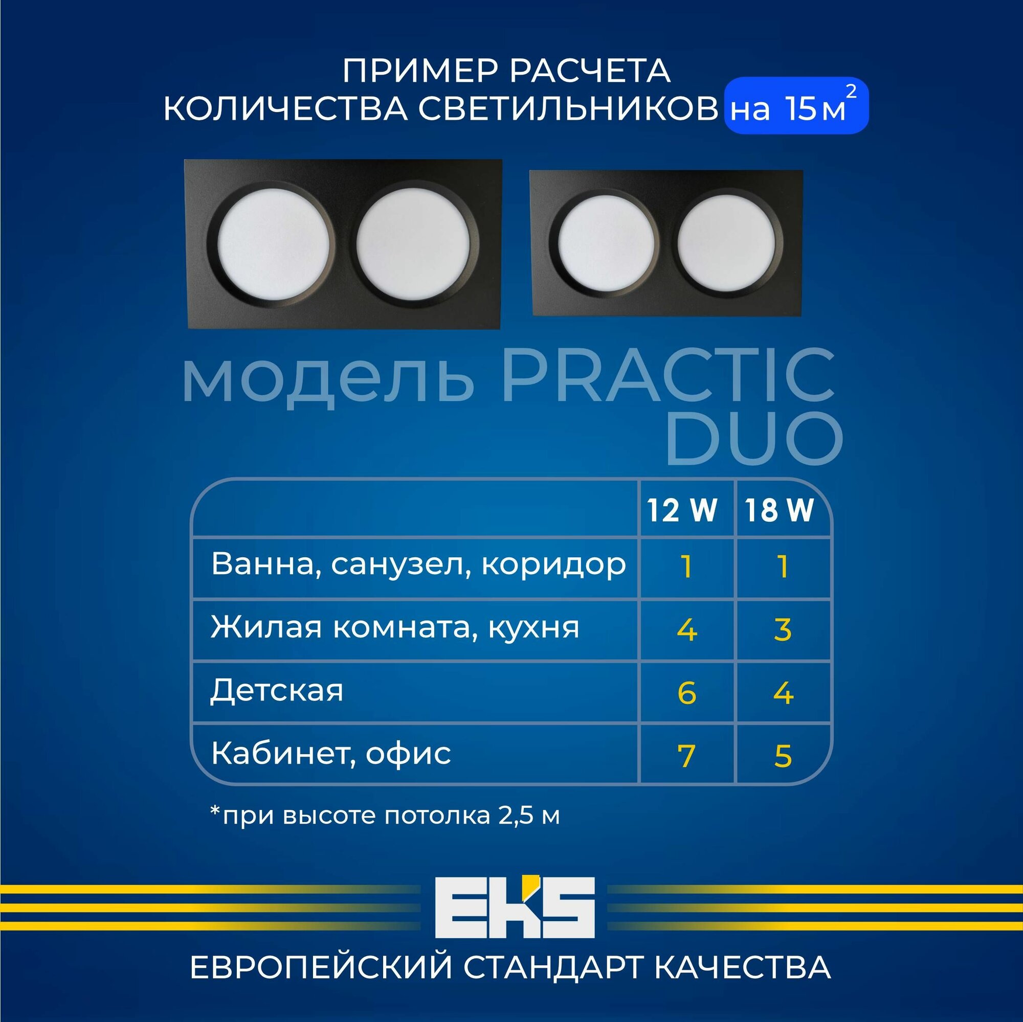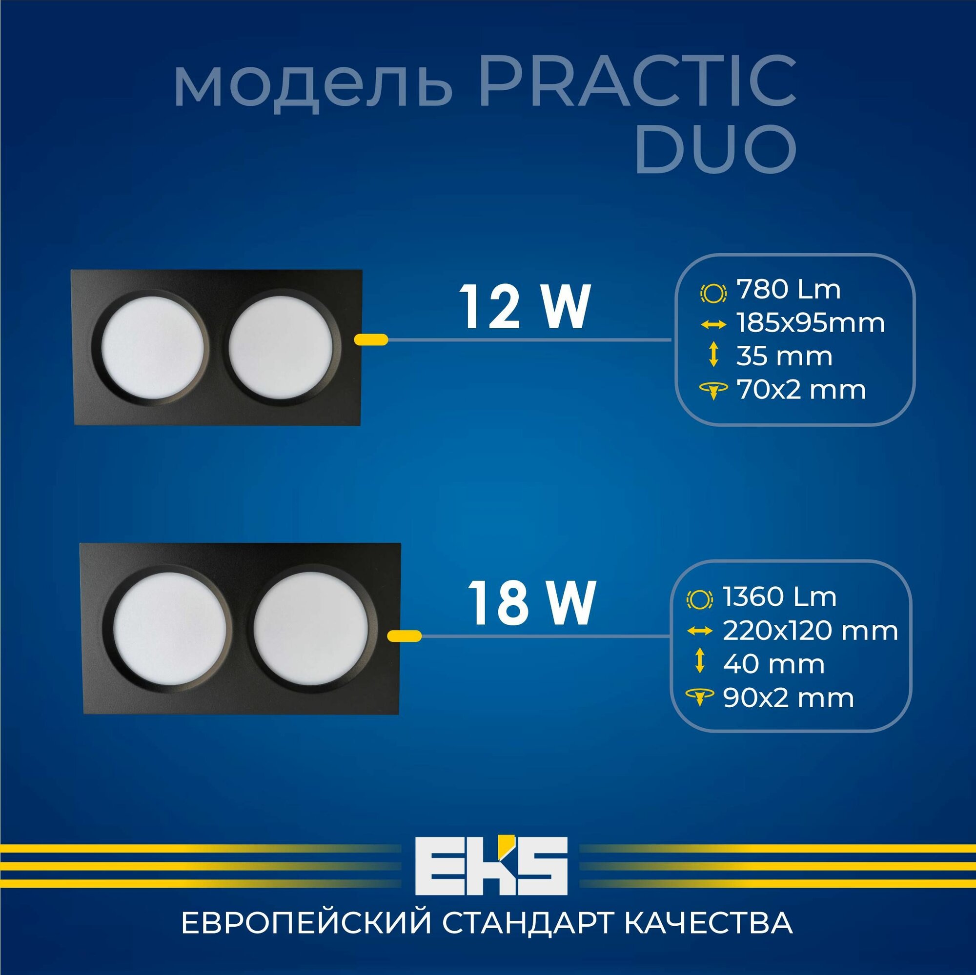 Встраиваемый светильник EKS PRACTIC DUO - Светодиодная панель, LED панель в белом корпусе (12 Вт, 780Лм, 4200К), 1 шт.