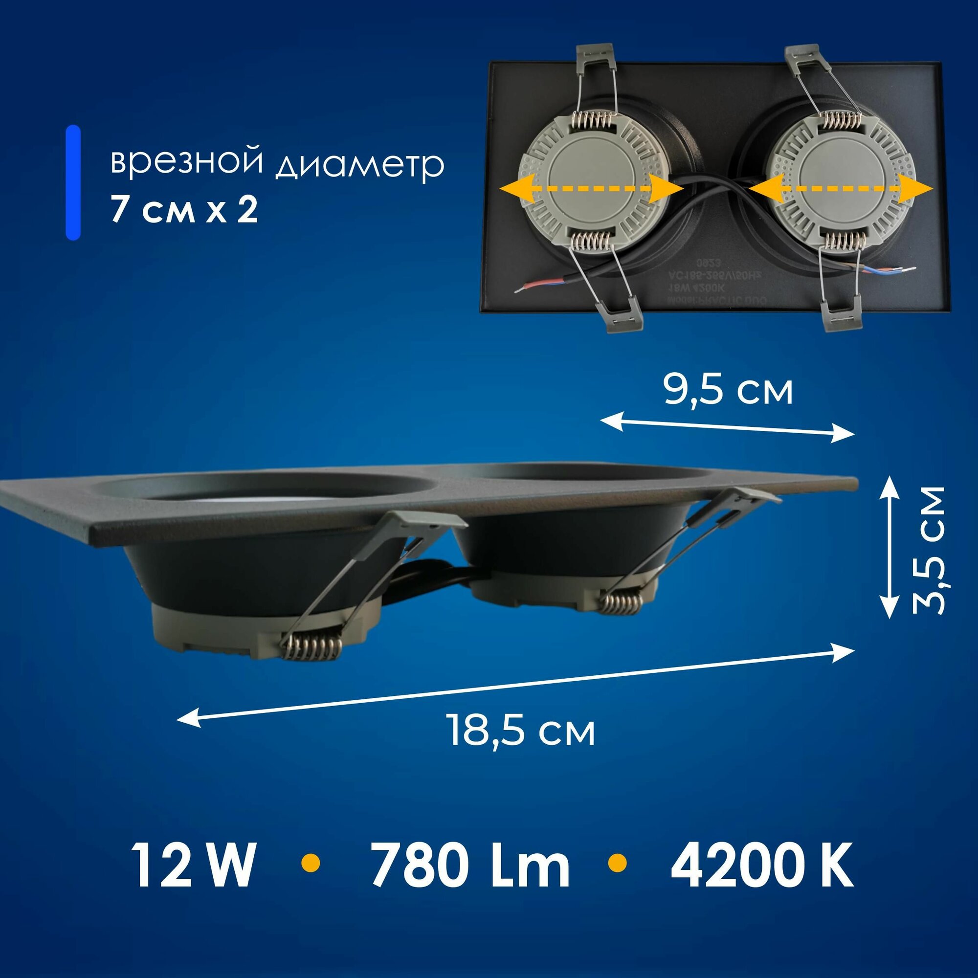 Купить Встраиваемый светильник EKS PRACTIC DUO - Светодиодная панель, LED панель в черном корпусе (12 Вт, 780Лм, 4200К), 1 шт.